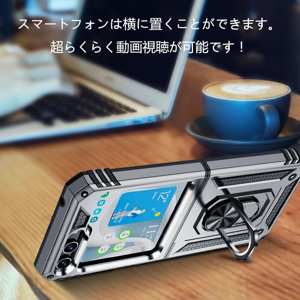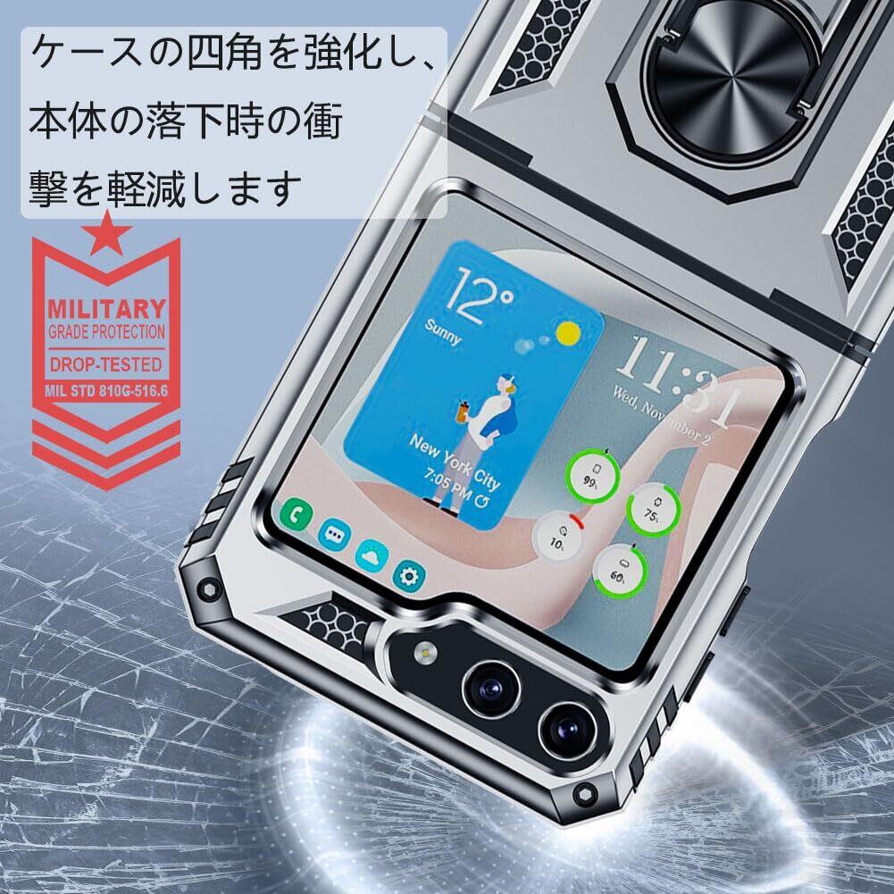 【在庫セール】TMUJWS Samsung Galaxy Z Flip5 5G ケース リング付き 耐衝撃 衝撃吸収 傷防止 全面保護 カメラ保護 スタンド付き TPU+PCバンパー 指紋防止対策 ギャラクシー ゼット フリップ5 5g ケース 6.7インチ 二重構造 360度回転 防塵 車載ホルダー対応 黄変防止 米軍MIL規格 軽量 薄型 耐傷性 滑り止め 人気 携帯カバー 銀 MZ61-102 | allstore3