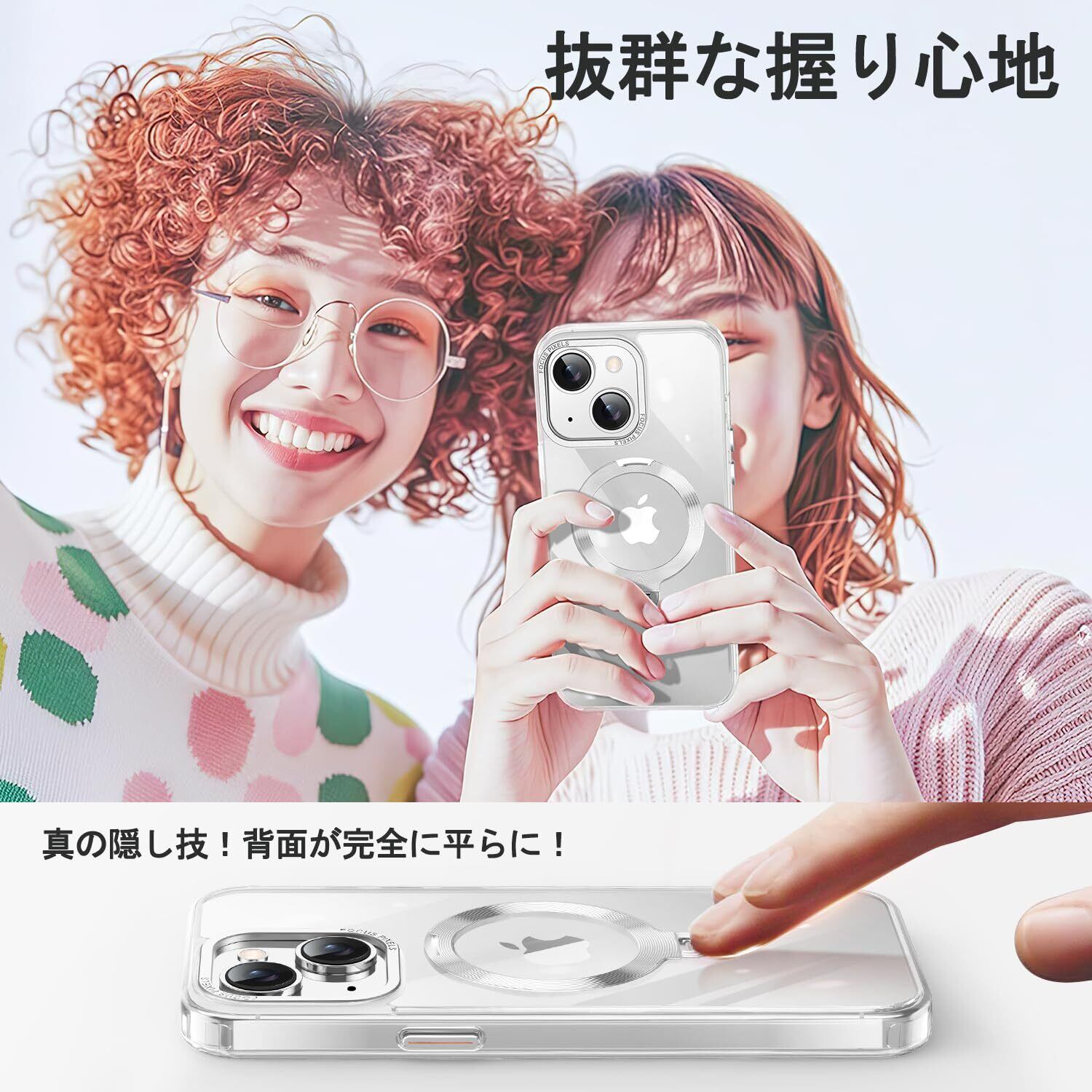【在庫セール】TISTUNST iPhone 15 用 ケース 透明 CDリング 【多機能 360°回転スタンド】【横縦両立・角度自由調整】搭載MagSafe対応 ワイヤレス充電対応 米軍MIL規格 耐衝撃 防指紋 黄変防止 レンズ保護 両眼 いphone15 用 ケース 6.1インチ (シルバー)