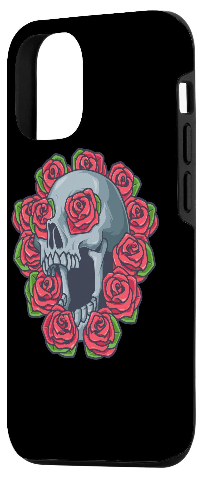 iPhone 15 ゴシック風スカルと赤い薔薇 スマホケース