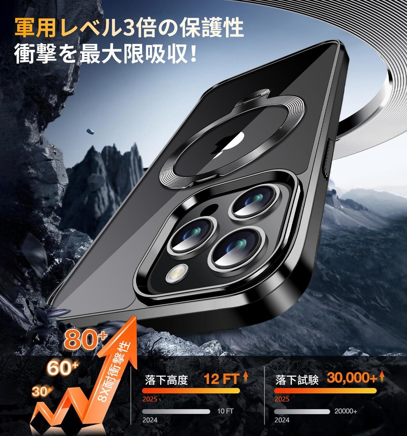 【N56磁石で驚異な磁力・多様なMagSafe製品対応】このスマホケース iphone14プロマックスは、驚異のN56磁石を搭載し、磁力は18Nに達し、通常のスマホケースより2倍の吸着力を実現。ワイヤレス充電器、モバイルバッテリー、リング、財布、車載ホルダーなど、さまざまなアクセサリーと組み合わせ、MagSafe対応のあらゆる場所にスマホを磁力で固定可能で、生活がより便利に。振ったり振動しても落ちないので、安心してお使いください。さらに、このいphone14 Pro Maxケースは両面式マグネットを搭載しており、冷蔵庫やロッカーなどの鉄製の場所に取り付けて自由に動画視聴ができます。スマホの使い方がさらに広がります。(鉄の含有量や分布面積が不足すると、磁力が十分に発揮されず、吸着力が弱くなる可能性があります。)