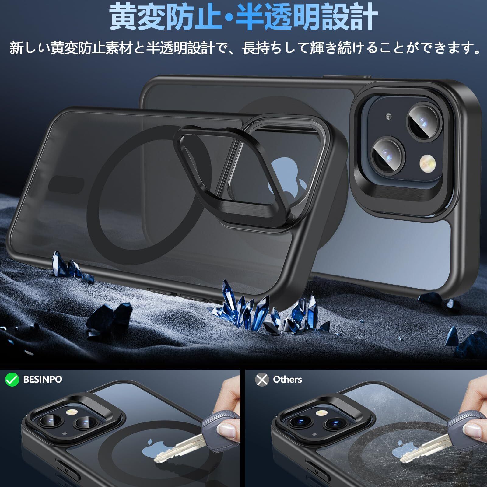 iPhone 12 mini ケース iPhone 13 mini ケース BESINPO [ガラスフィルム付き・MagSafe対応・スタンド機能] いphone12 mini カバー 縦横両対応 調整可能 半透明 黄ばみなし 指紋防止 耐衝撃 マグネット搭載 マグセーフ対応 ストラップホール 隠しスタンド iPhone 12mini/13mini スマホケース 5.4インチ ブラック