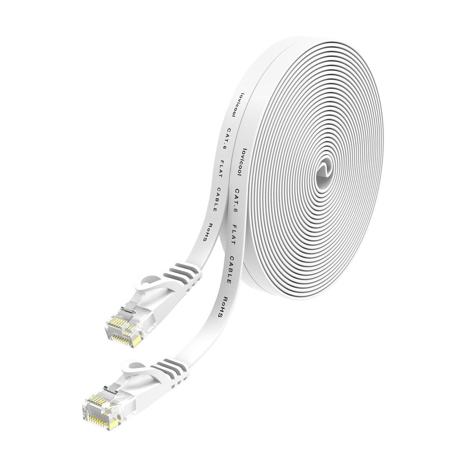 Lovicool LANケーブル 20m CAT6 フラットlanケーブル カテゴリー6 コネクタ 32AWG 250MHz CAT6準拠ランケーブル RJ45ギガビット対応 配線しやすい イーサネットケーブル ツメ折れ防止 家庭/オフィス/ゲーム機用 ホワイト