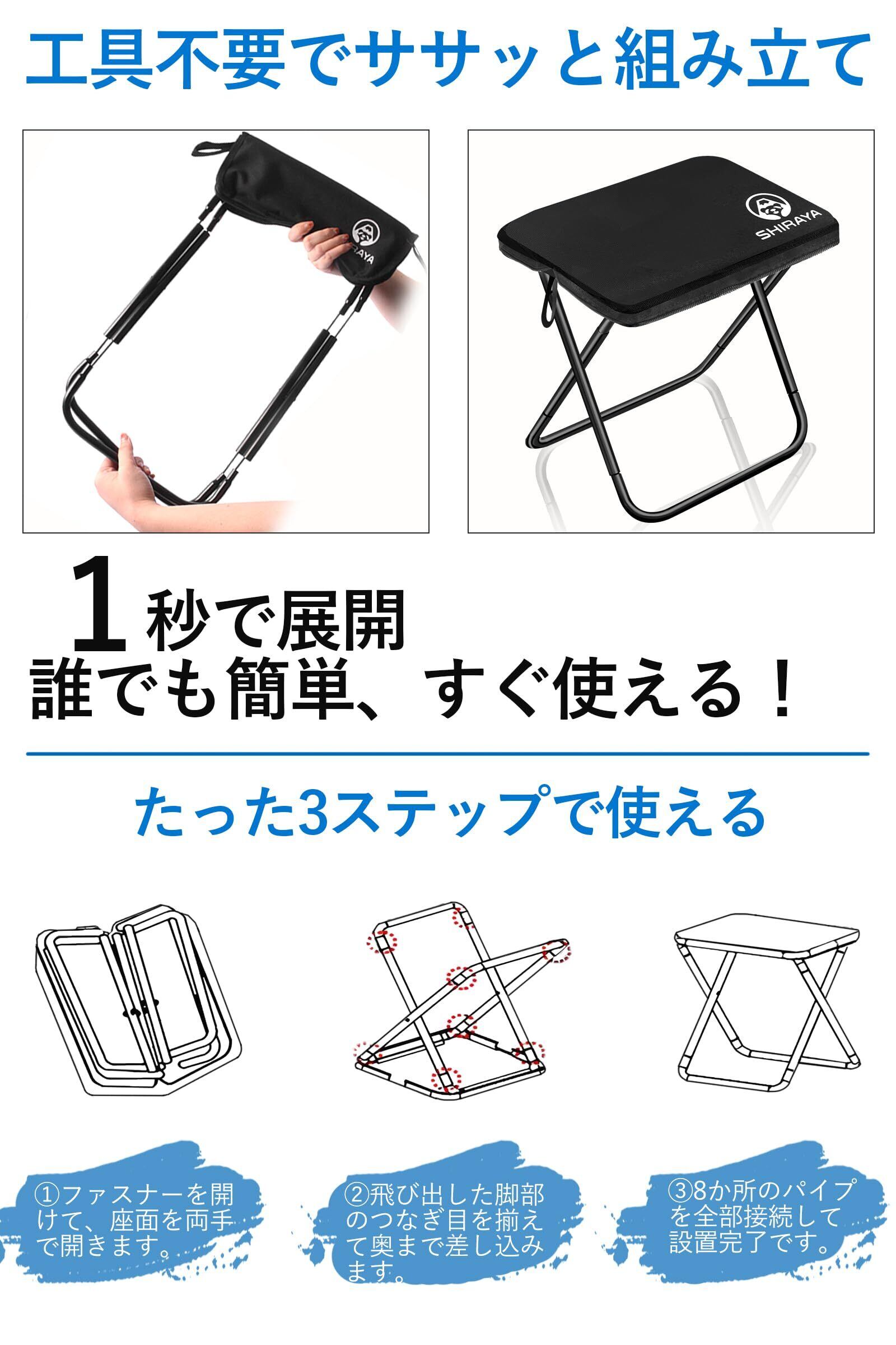 【在庫セール】shiraya【2025Newモデル】折りたたみ椅子 アウトドアチェア コンパクト 超軽量 アルミ合金 ショルダー付き 持ち運び便利 収納袋一体型 携帯チェア キャンプ 椅子 日本語説明書付き ハイキング 釣り(ブラック) | allstore3