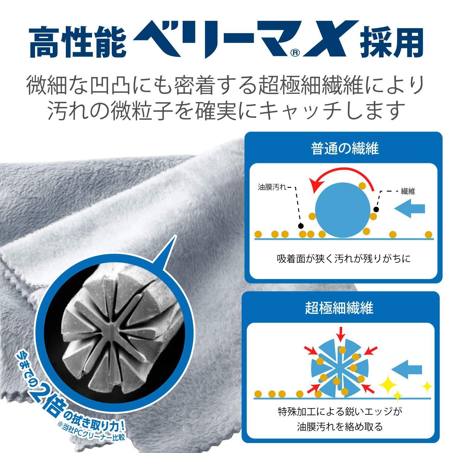 ■ 分割型構造の超極細繊維「ベリーマ(R)X」を使用しています。※ベリーマ(R)XはKBセーレン株式会社の登録商標です。