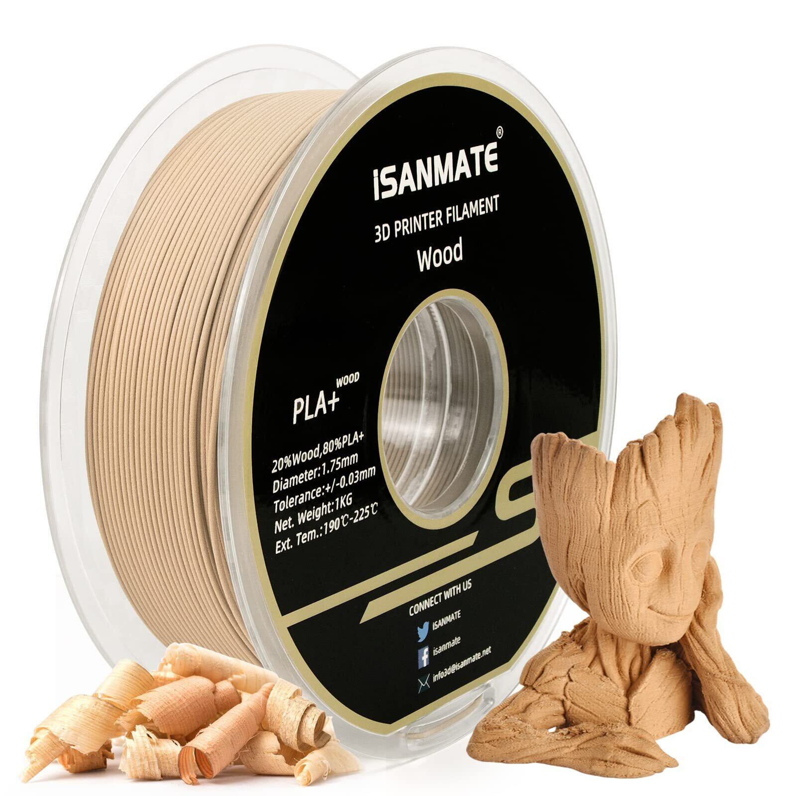 【2022最新】iSANMATE 木製 3Dプリンター用 PLAフィラメント、木造フィラメント素材 木部繊維20%以上 1.75mm径 寸法精度+/- 0.03mm 1KG (2.2LBS)、PLA+ 3D Printing Filament スプール | allstore3
