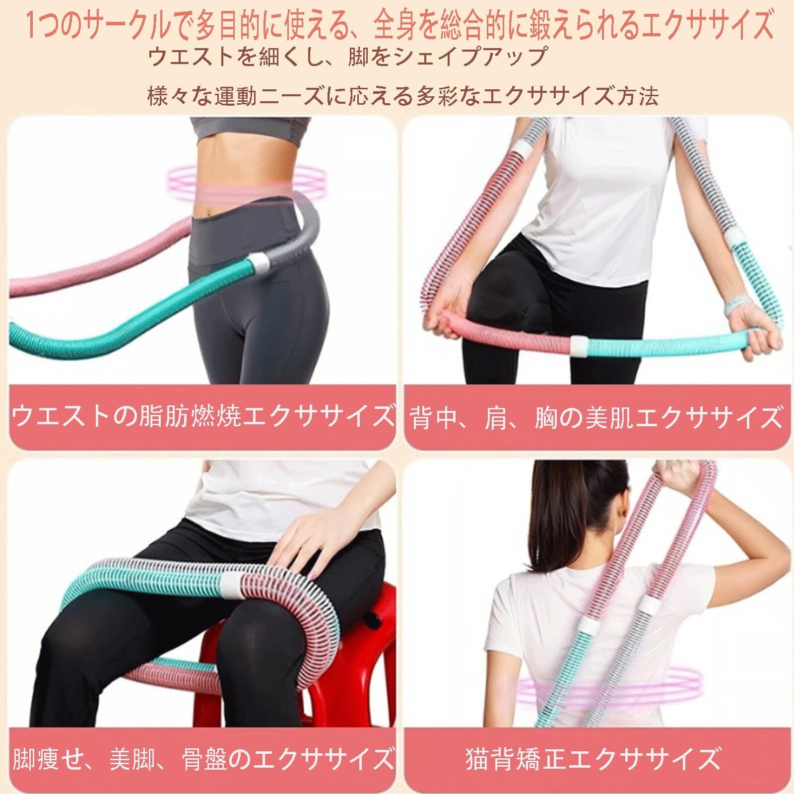 Bookwarm【2025新登場】フラフープ ダイエット ウェイト付き ベリー フィットネス PVCソフトスプリングフープ 折りたたみ式 ポータブル 静音設計 フラサークル 脂肪燃焼 筋トレ シェイプアップ (ウエスト・背中・脚・胸 エクササイズ) 室内/公園用 男女兼用