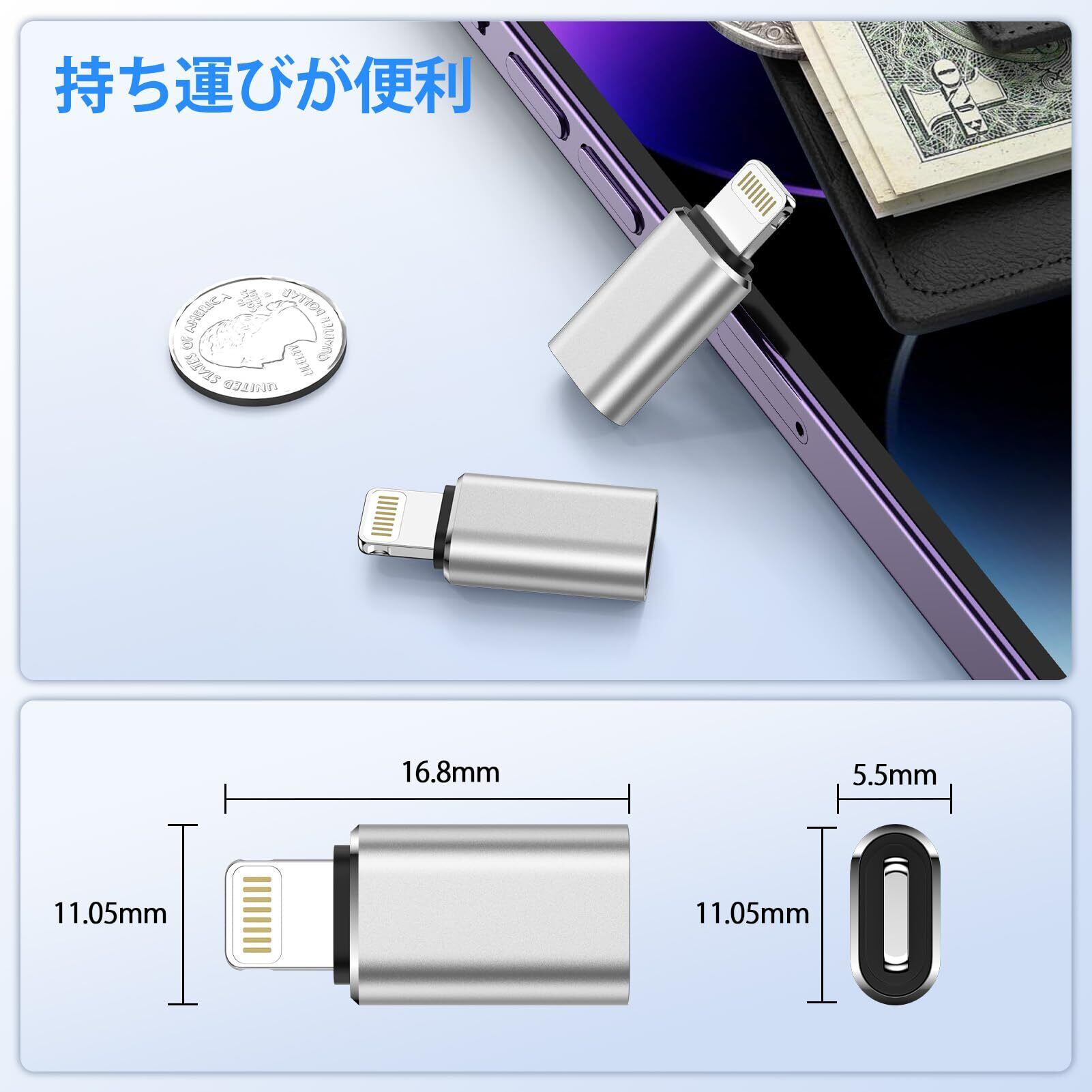 【小型で軽量&携帯に便利】USB-C IOS 変換コネクタは裏表に関係なく両面挿せるデザインを採用し、より快適に使用できます。縦横高さ全てで小型化、軽量化を実現して持ち運びやすいです。財布・ポケットにしまえて、場所を取りません。