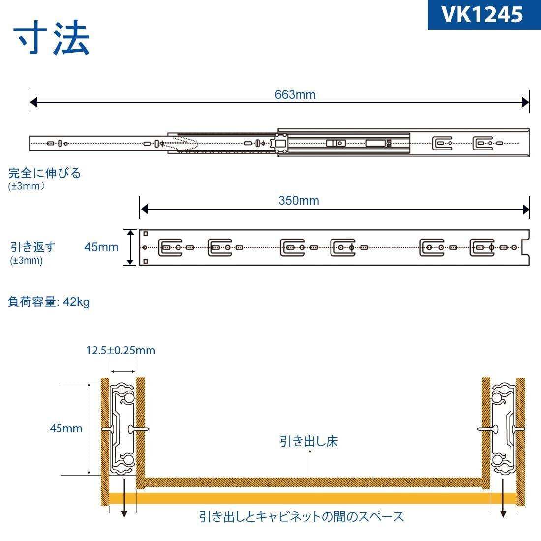 【2022最新】VADANIA ソフトクローズ ボールベアスライドレール 350mm diy 3段引 VK1245 引き出しスライドレール 左右1セット