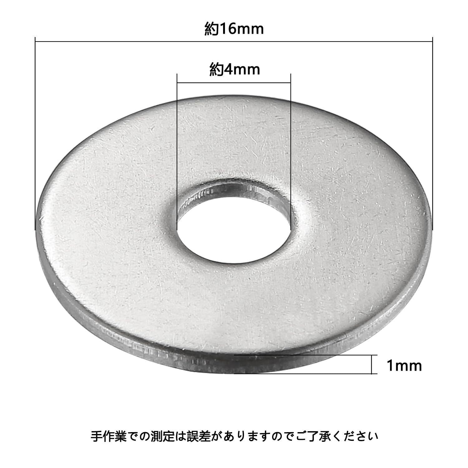 【新春セール】ステンレス 大ワッシャー M4用【外径16mm, 厚み 1mm】 (M4)