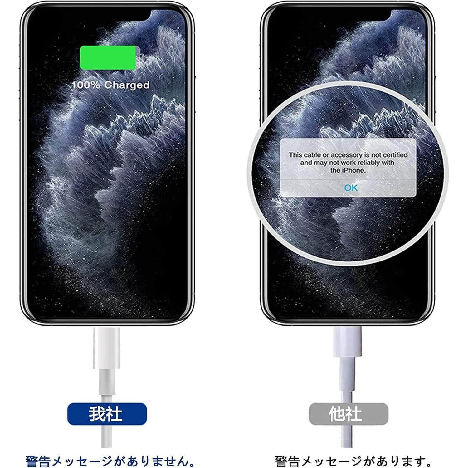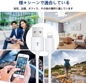 ▶【高速充電とデータ転送】iPhone 充電ケーブルは5V/2.4Aの急速充電と最大480Mbpsの高速同期を実現出来ます。銅製心線を採用し、電気抵抗が低く、 充電速度がより速くなり。より高速で便利な充電体験をお楽しみください。過電流、過電圧、過熱、短絡から保護できます。※ご注意:スムーズな充電のために、アップルプロトコルに対応した12W~20W以内の充電器アダプターのご使用をお勧めします。20W以内充電器アダプターご使用下さい。
