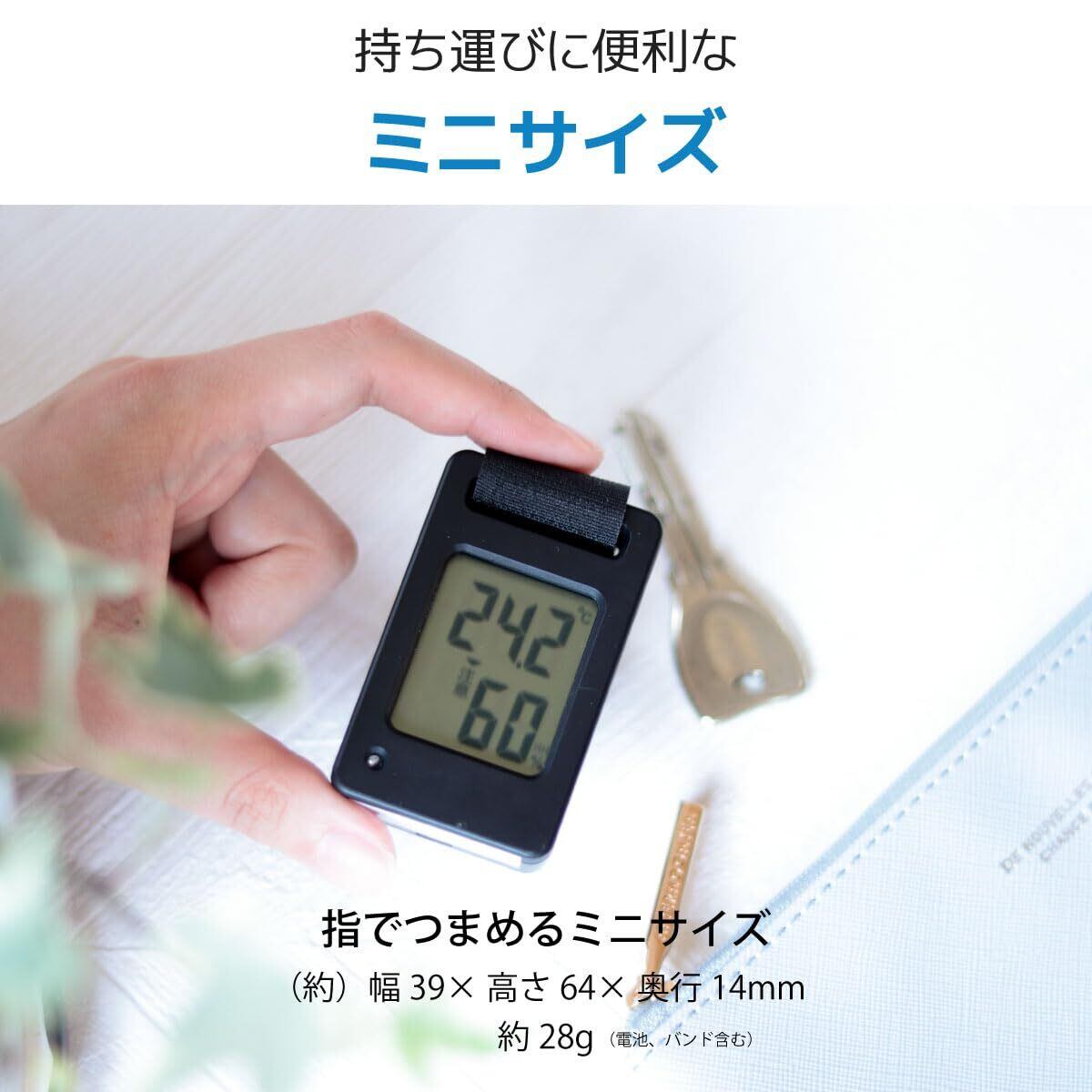 オーム(OHM) 電機 温湿度計 ミニ ポータブル デジタル バンド付き 熱中症予防 赤ランプ点滅 高温警告 注意マーク表示 ブラック TEM-801-K 08-1453