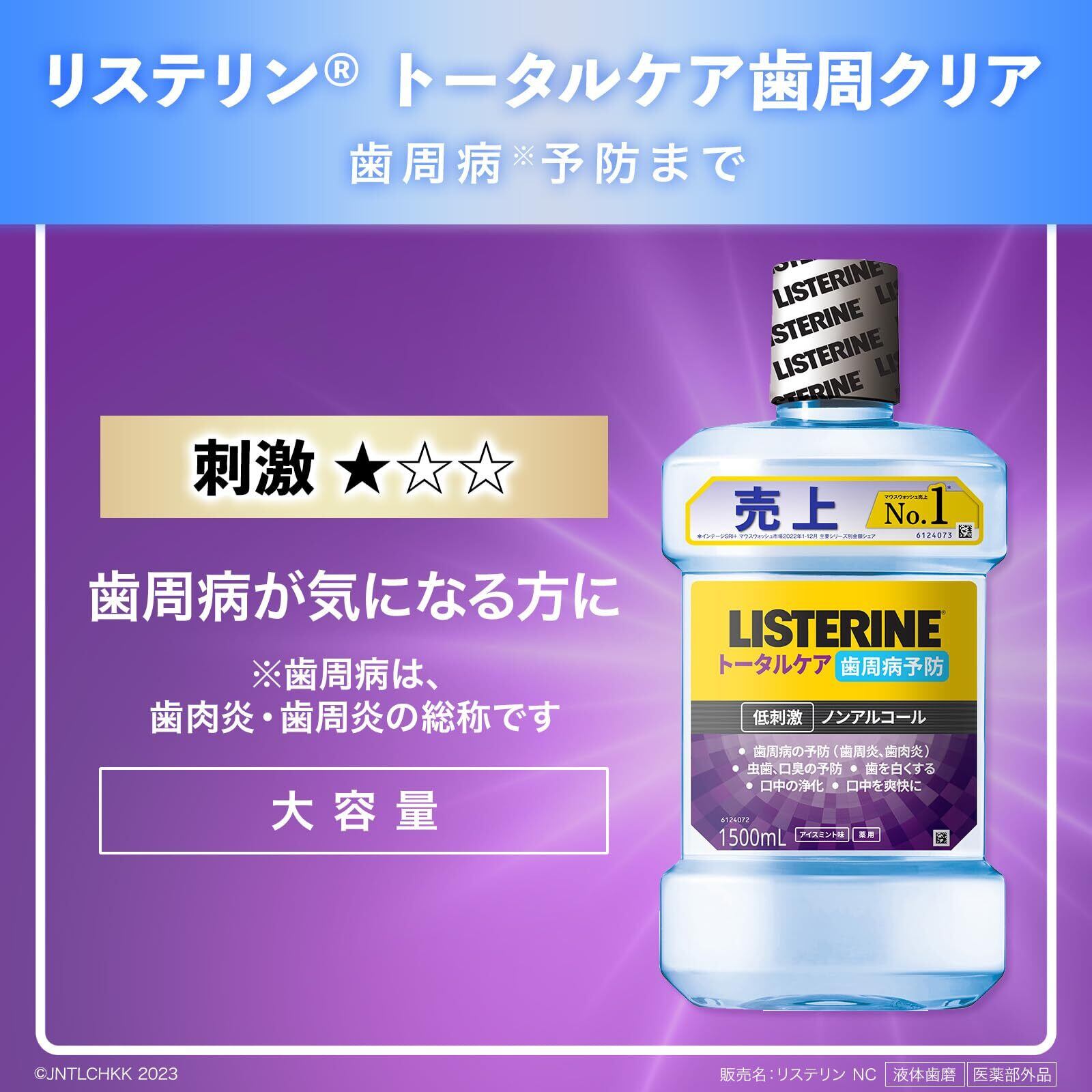 【大容量】 LISTERINE(リステリン) トータルケア 歯周クリア マウスウォッシュ 液体歯磨 歯周病 予防 低刺激 ノンアルコール 1500ml お徳用 医薬部外品 薬用 アイスミント味