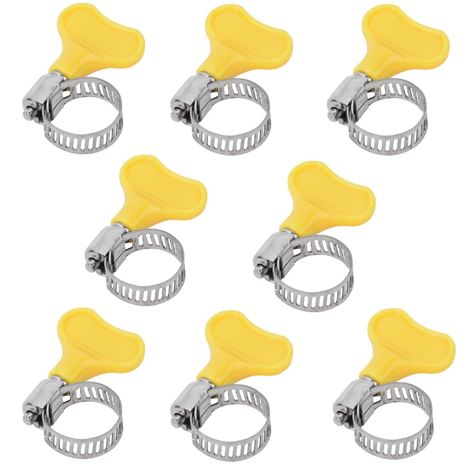 【在庫処分】サムコス ホースバンド ステンレス製 散水ホース固定用 工具不要 つまみタイプ 黄色 強力固定 外径:16mm~25mm 作業簡単(8個セット)