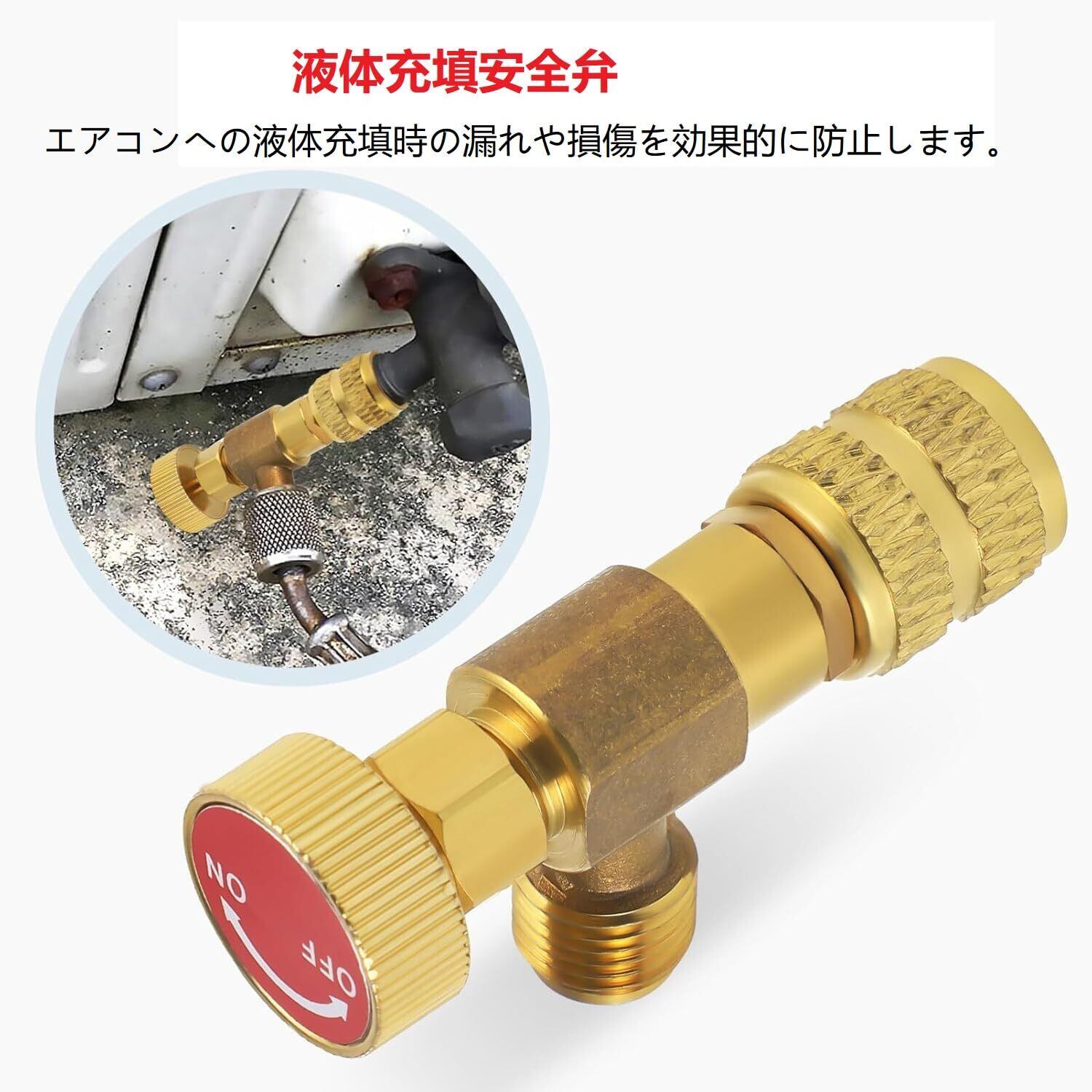 【冷媒ボールバルブ】取り付けが簡単で、充填ホースの端に取り付けるだけで、整備中の冷媒損失を最小限に抑えることができます。