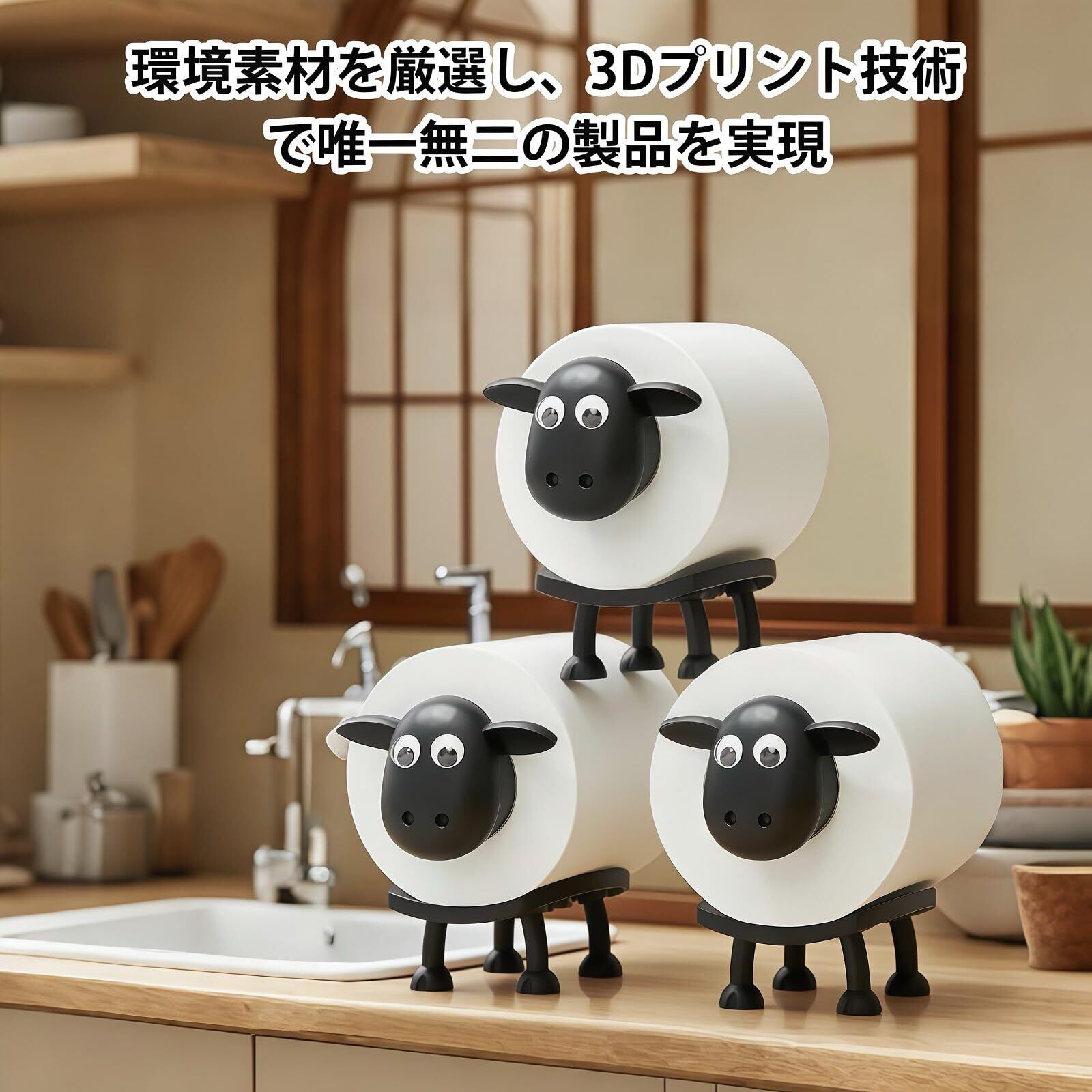 【ほっこり癒しデザイン】洗面所にほっこり癒しをプラスする羊型ペーパーホルダー。ナチュラルなフォルムが和モダンな空間に溶け込み、毎日の生活に小さな幸せを届けます。