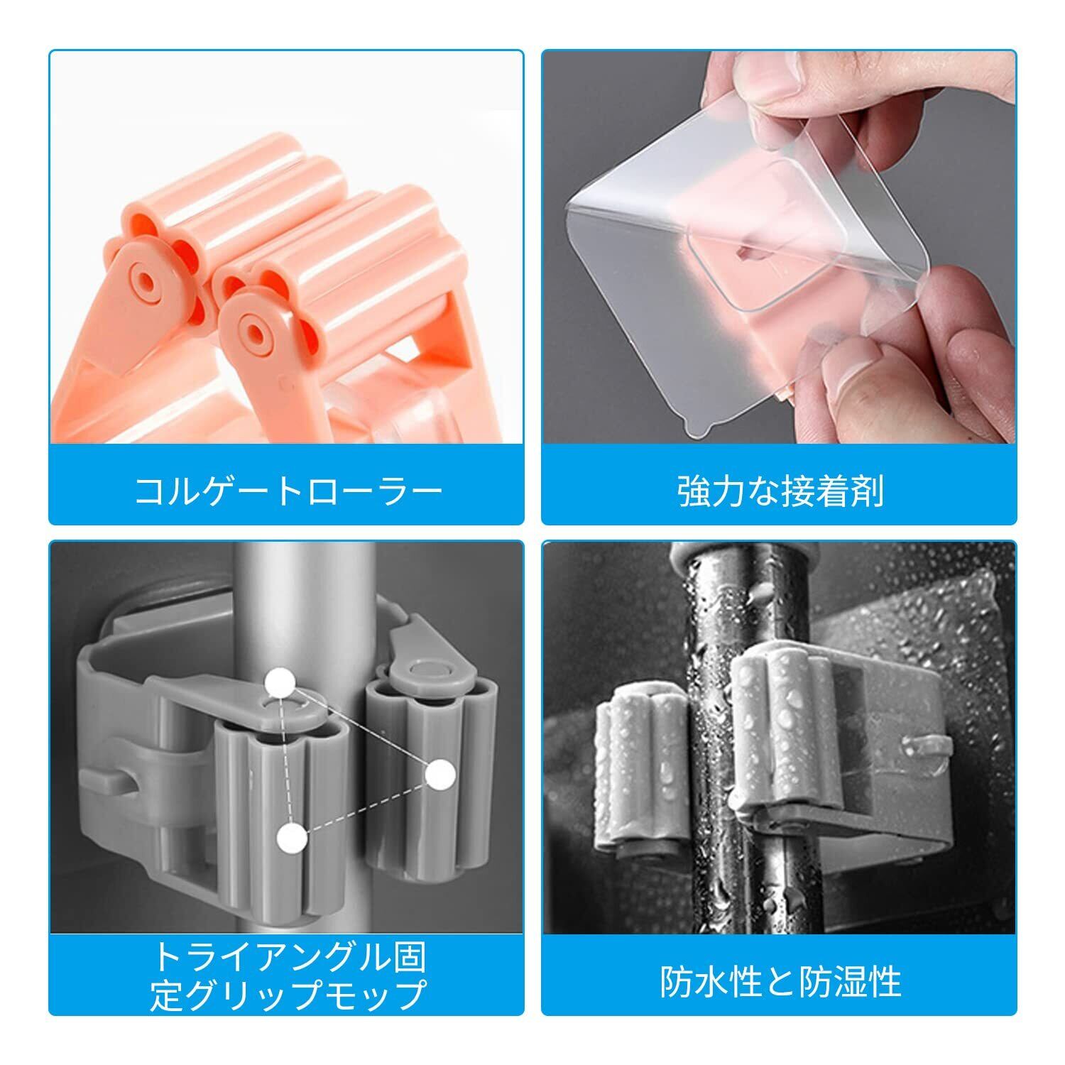 【モップホルダー】 モップホルダーなら吊るせる様々な道具を簡単に整理,積み重ねでき、壁掛け収納ラックは壁に貼れる粘着タイプなので、リビングなど様々な場所で有効活用できます。モップやほうきを使いたいときにサッと 取り出せます。掃除の効率を高めるのに役立つことでしょう。さまざまな場所で使用できる壁掛け式の省スペースで、滑り止めマットも付いています。 より快適な生活空間を創造します。