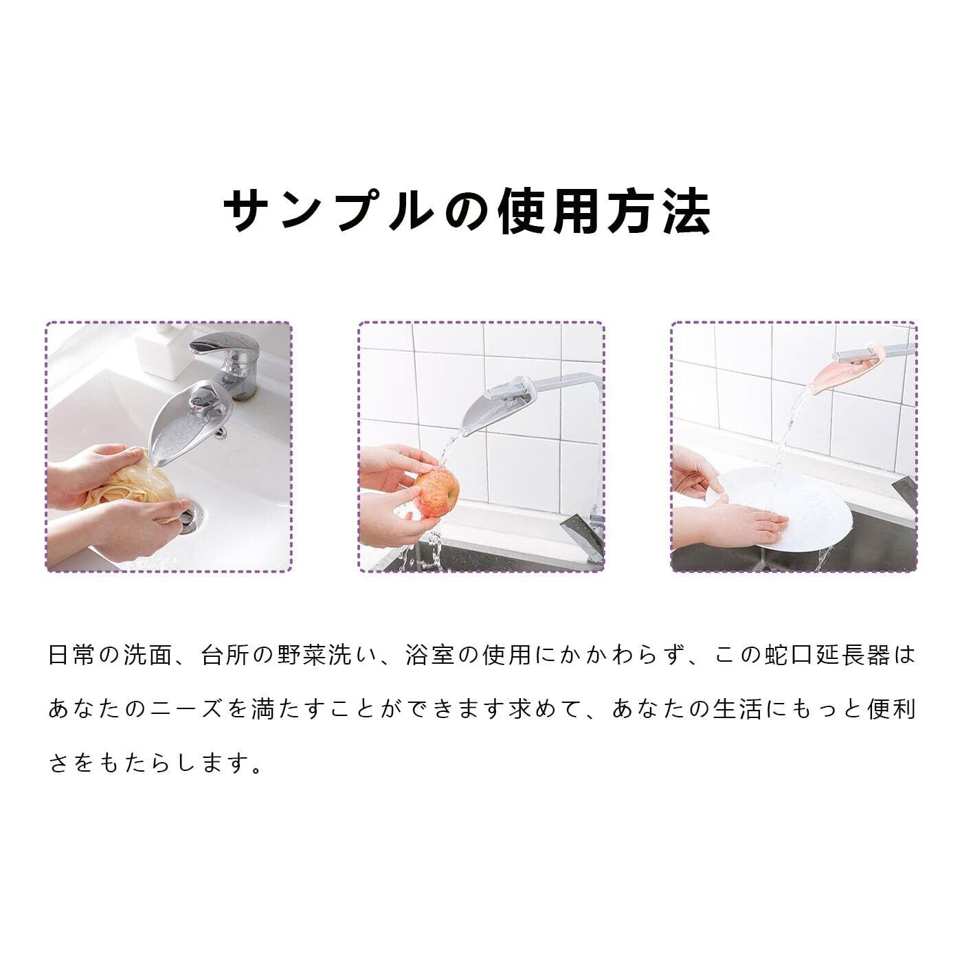 【適用シーンは幅広い】日常の洗面、台所の野菜洗い、浴室の使用にかかわらず、この蛇口延長器はあなたのニーズを満たすことができて、あなたの生活にもっと便利をもたらすことができます。