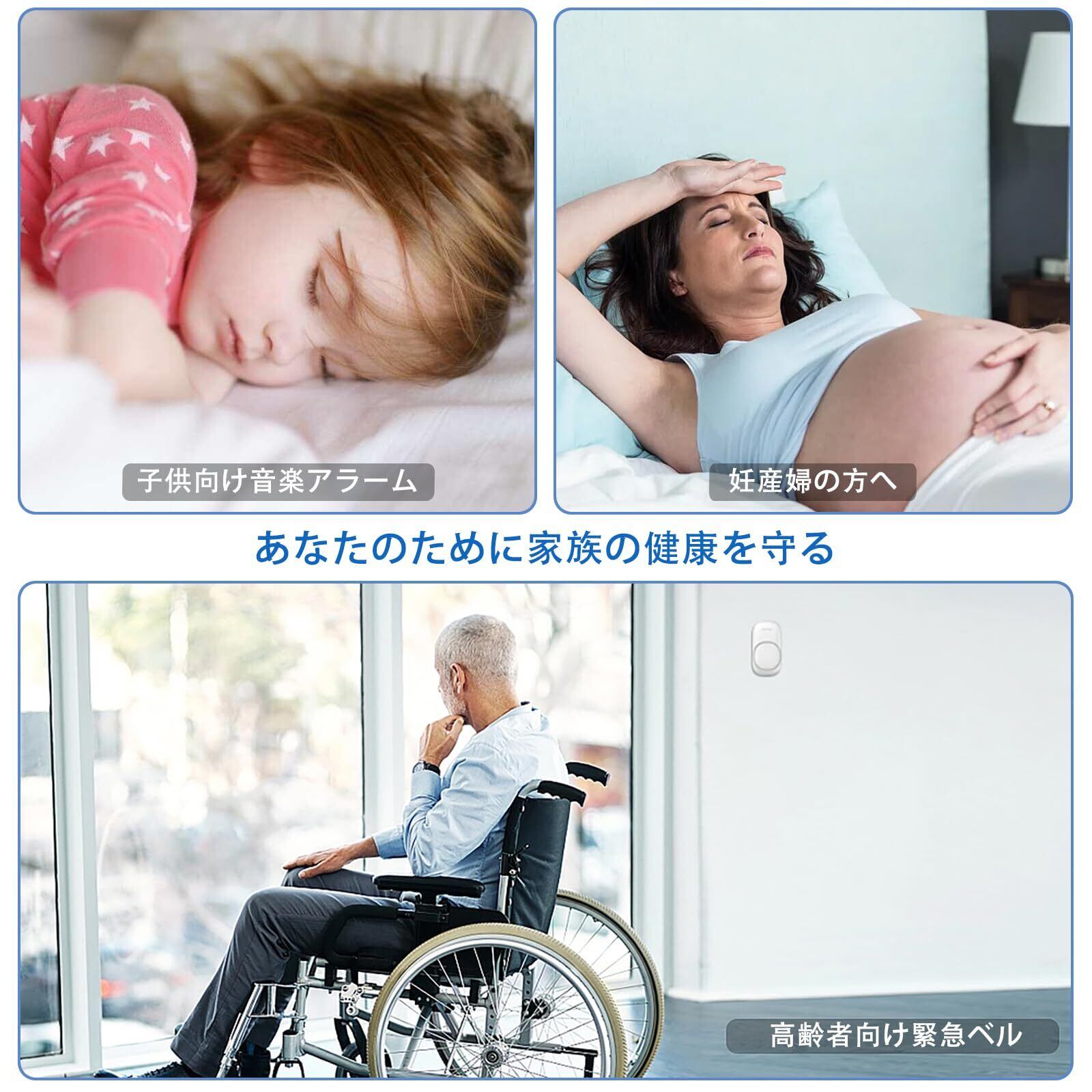 【増設自由&多用途】1つの送信機が複数の受信機に接続可能。1つの受信機も複数の送信機に接続することもできます。送信機と受信機を任意に組み合うことができ、2対2、3対2などが実現可能です。 来客時の玄関チャイム、介護、御店や事務所での連絡や呼び出しに様々な場所にご利用できとして大活躍です。 お年寄り、子ともや体の不自由な方のチャイムとしてもおすすめです。