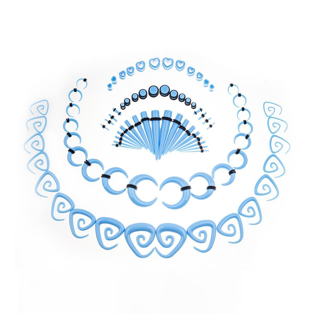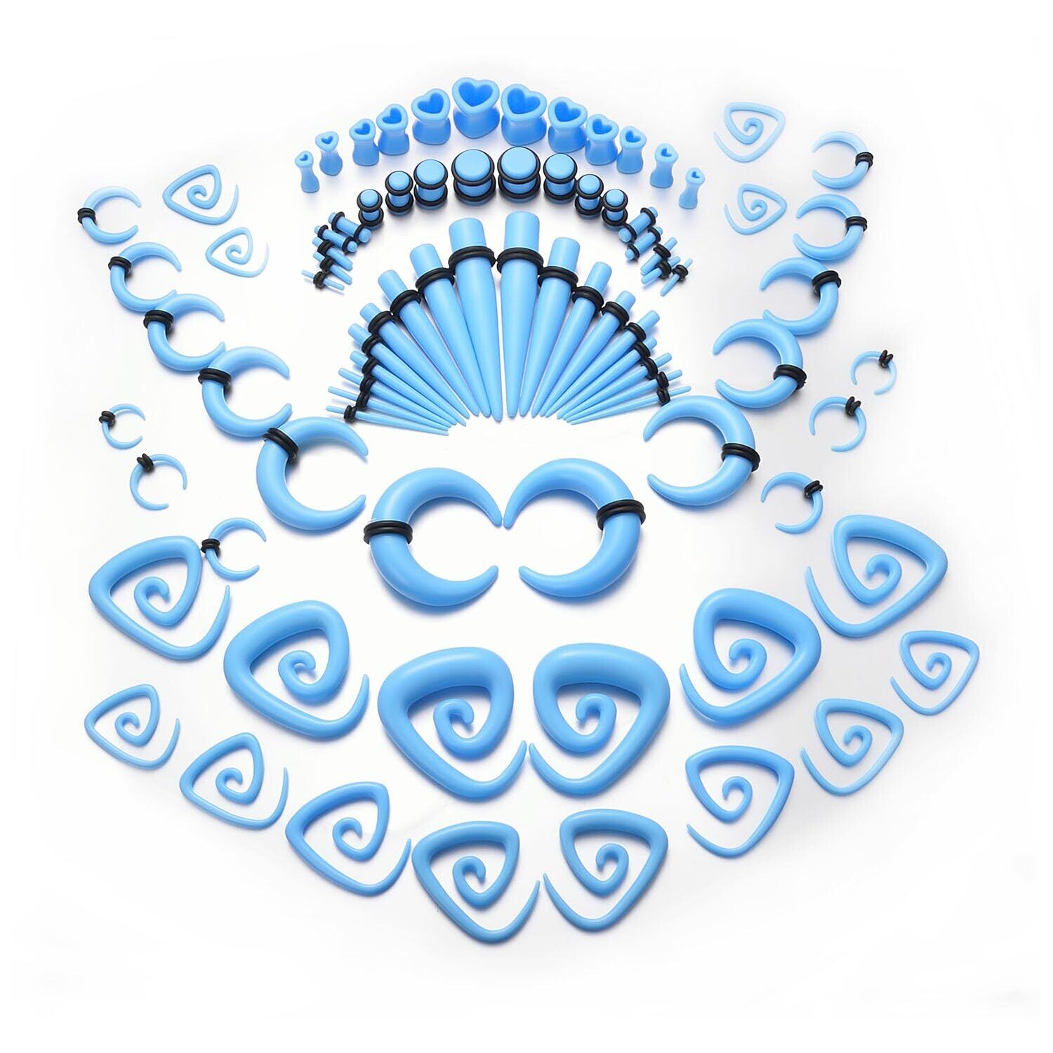 Vogem 54/ 84点拡張器 ピアス セット アクリル製 拡張 ボディピアス 渦巻き フレア スパイラル プラグ ゴムリング付き メンズ レディース 金属アレルギー対応 エキスパンダー プレゼント