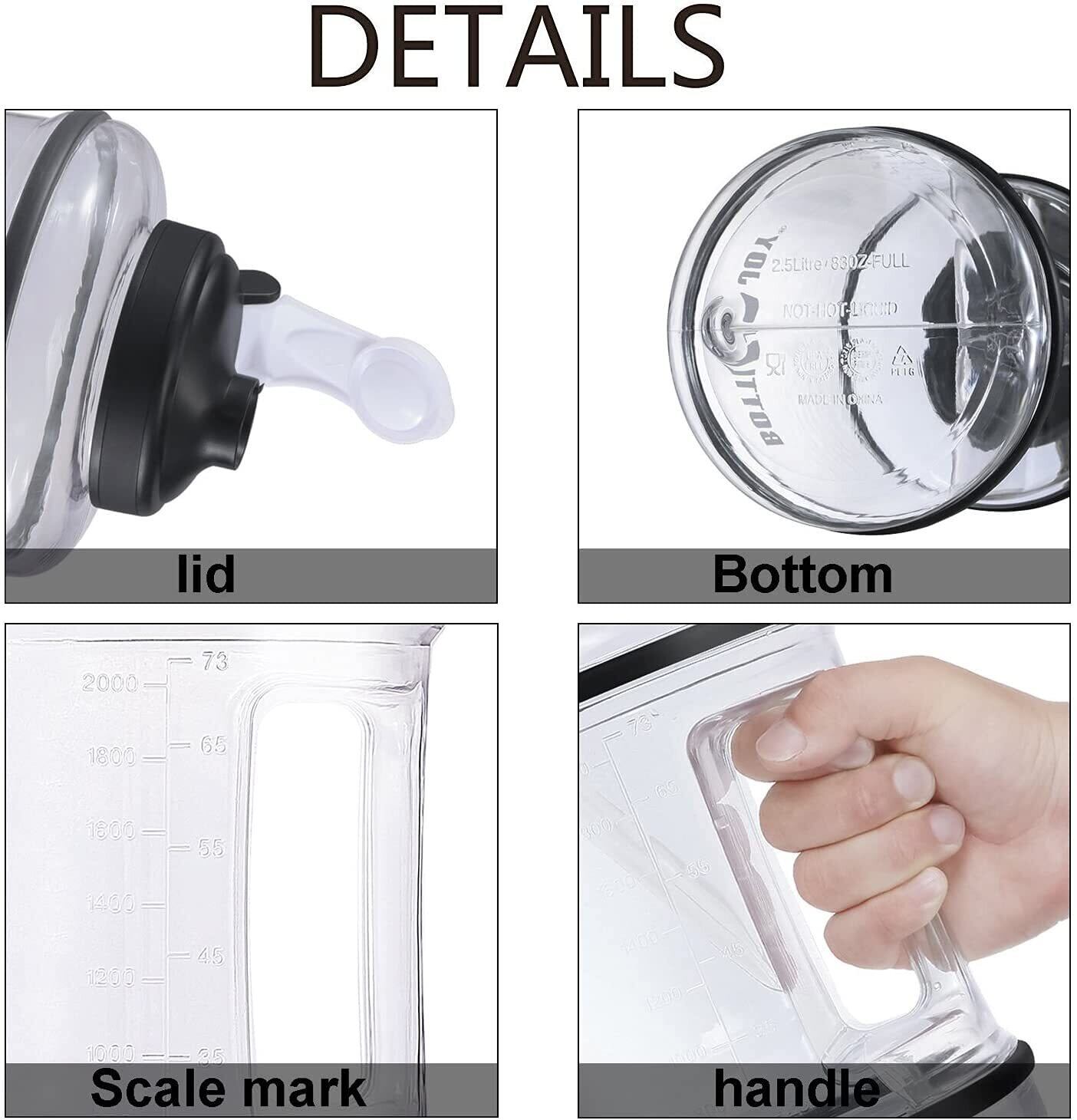 ❂【大容量&追跡しやすい】2.2Lと2.5Lスポーツウォーターボトル は、通常の1日の水のニーズを満たし、水分摂取量をより良く追跡します。 水位は半透明ボトルの測定目盛で見やすいです。