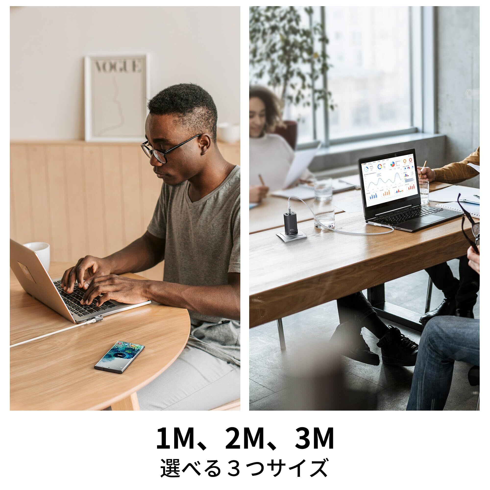 【便利な2本セット】1mはオフィスやデスクに最適、2mは移動中やリラックス時に便利、3mは会議室や寝室にぴったり。予備用として旅行や出張にもおすすめ。