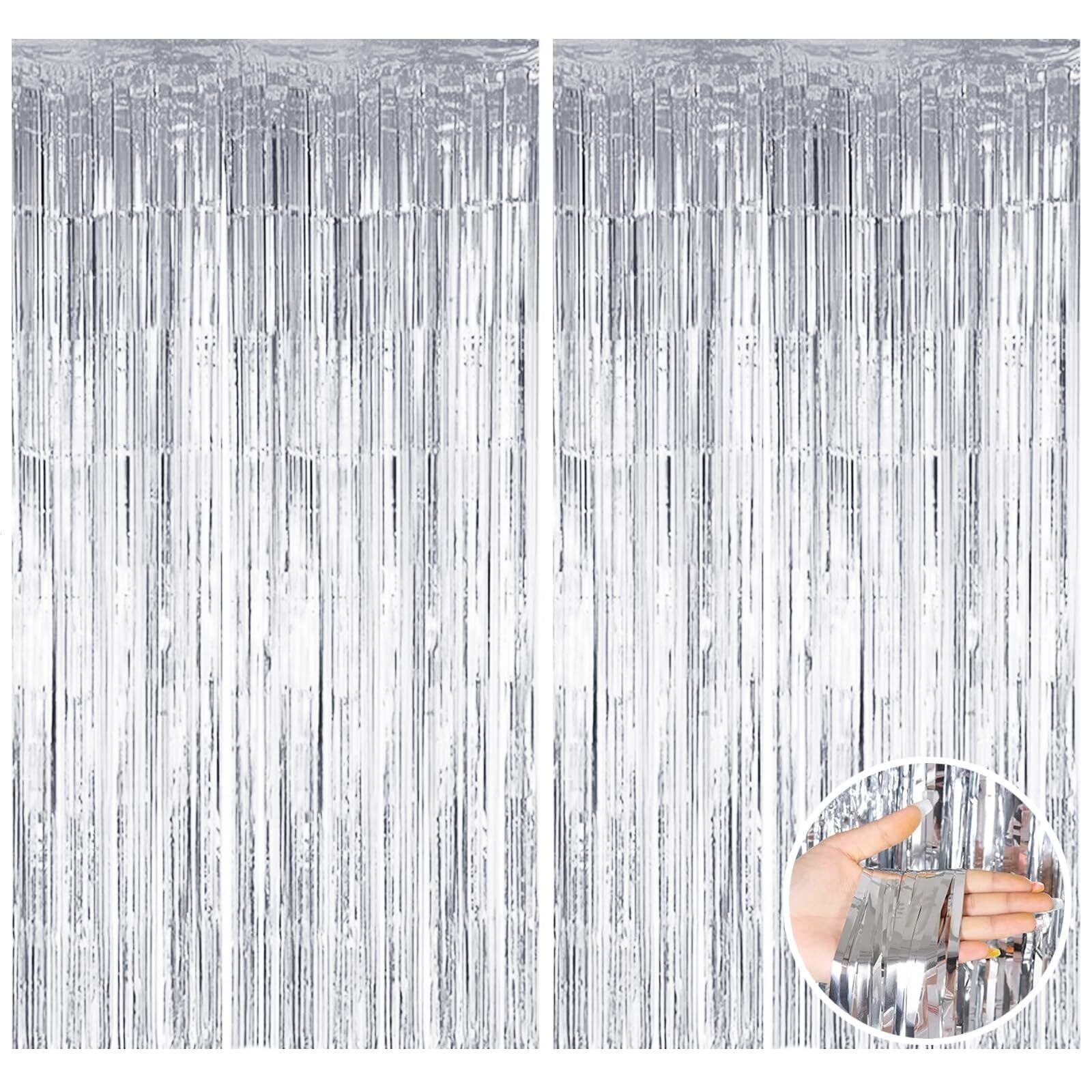 【特価商品】サムコス タッセルカーテン 2個セット 100cm*200cm キラキラ フリンジカーテン 背景 明るい光沢 誕生日 結婚式 忘年会 パーティー 装飾 お部屋の装飾 (シルバー) | allstore3