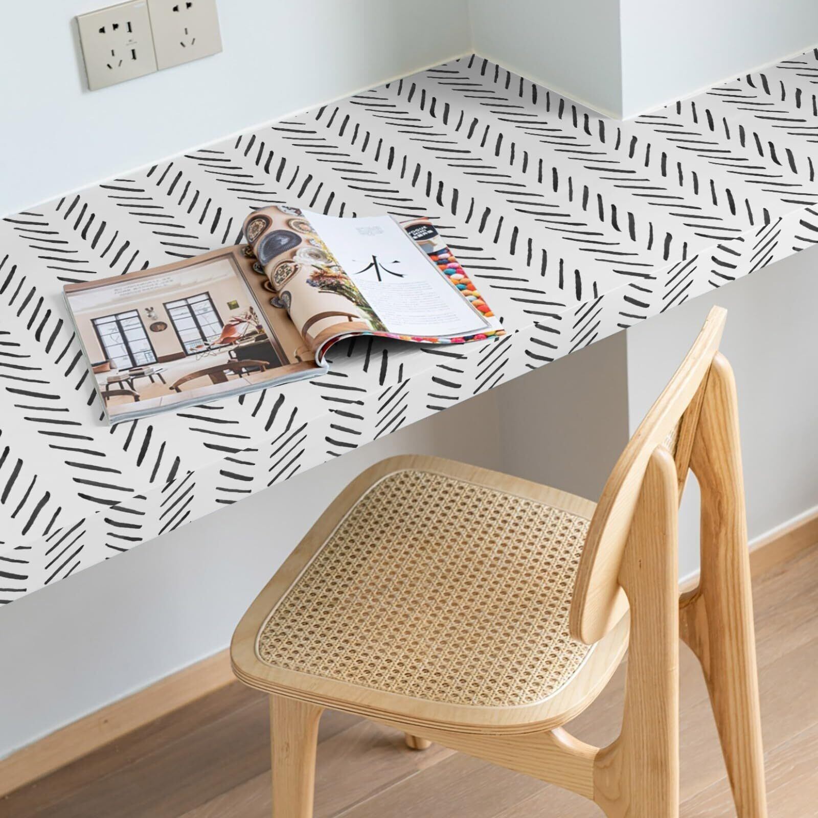 壁紙シール はがせる リメイクシート 白と黒のストライプ 厚手 透けない おしゃれ カッティングシート 剥がせる 賃貸 DIY 防水 壁紙シート 家具のキッチン壁の装飾(ホワイトとブラック )44.5cm x 10m