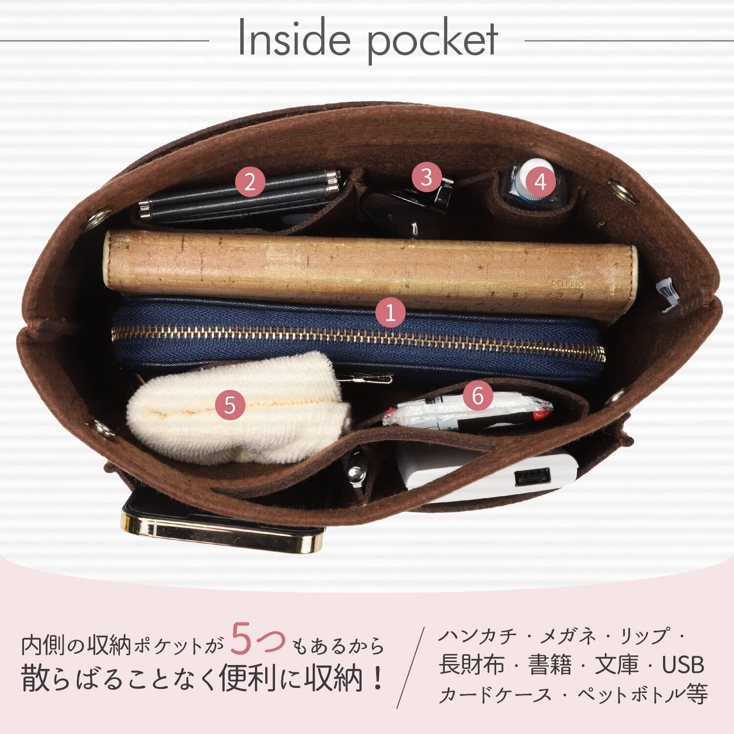 5つの内側ポケット 5つの小さなポケットが配置されている バッグインバッグ はモバイルバッテリーやスマホなどの収納に適しておりますのでバッグの中を探す手間も省きます。