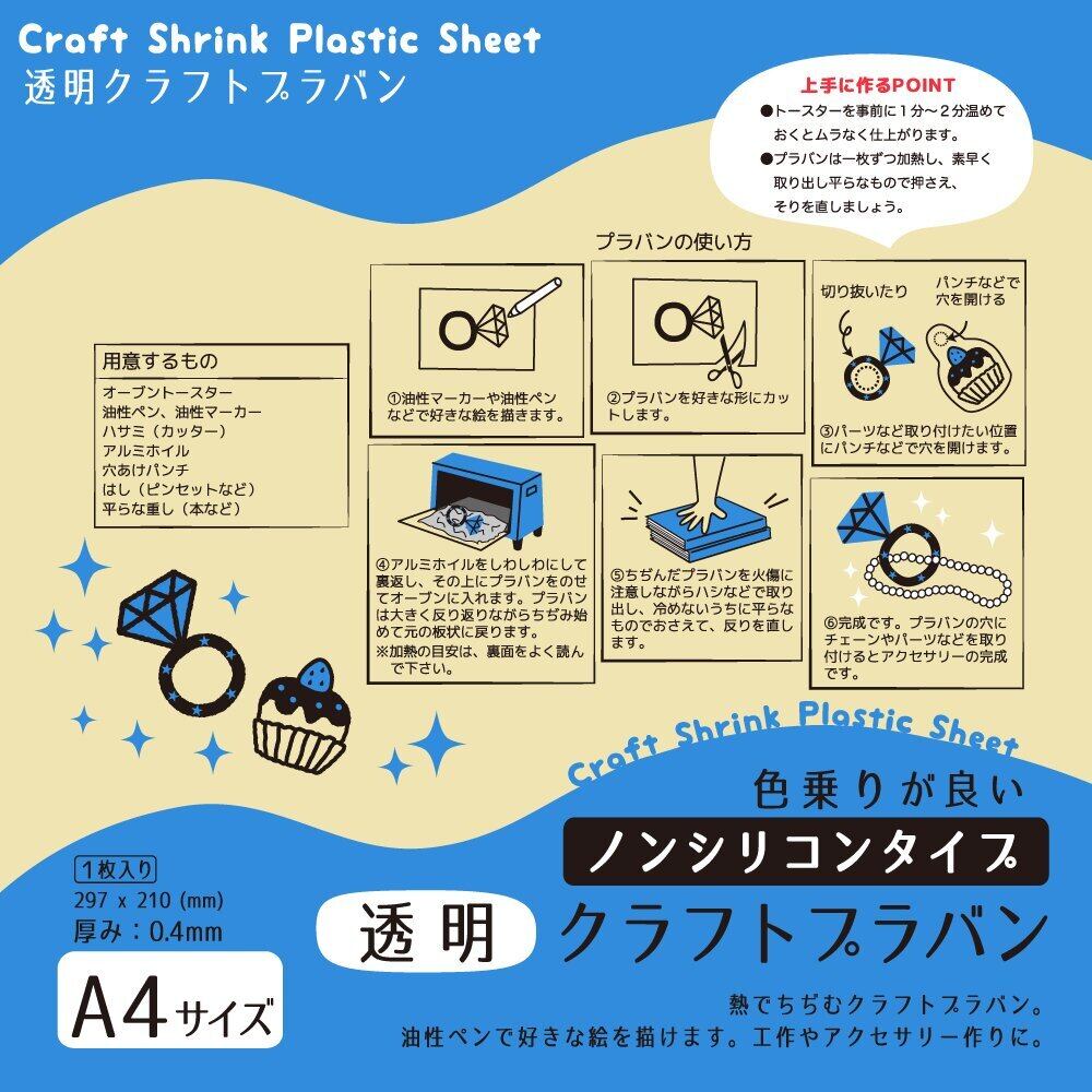 熱で縮むクラフトプラバン。油性ペンで絵やデザインを描くのに適しています。オーブントースターを使用して、工作やアクセサリー作りに挑戦しよう!