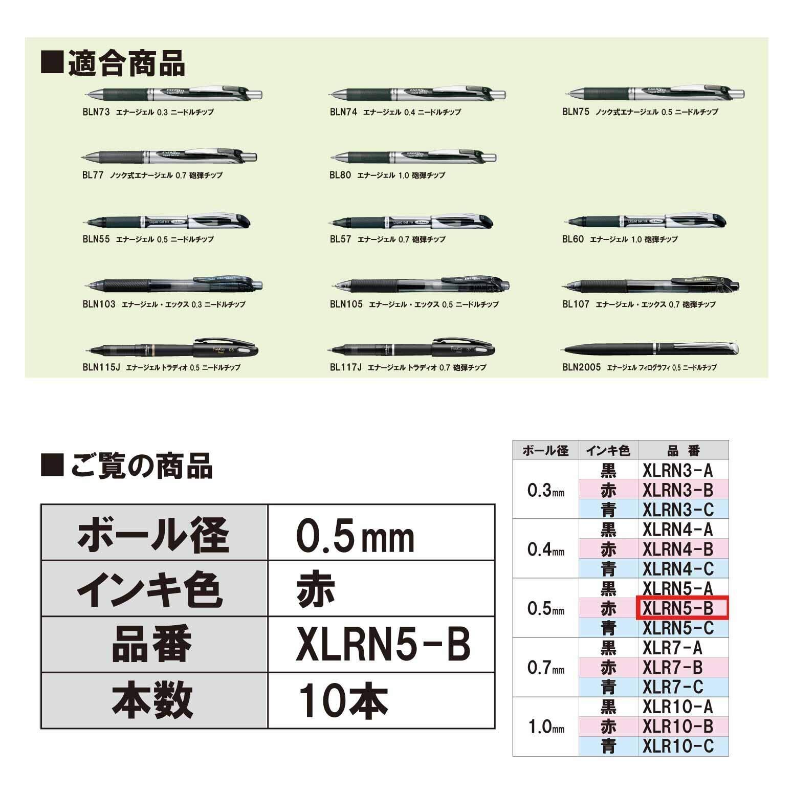 ぺんてる ボールペン替芯 エナージェル 0.5mm XLRN5-B 赤 10本