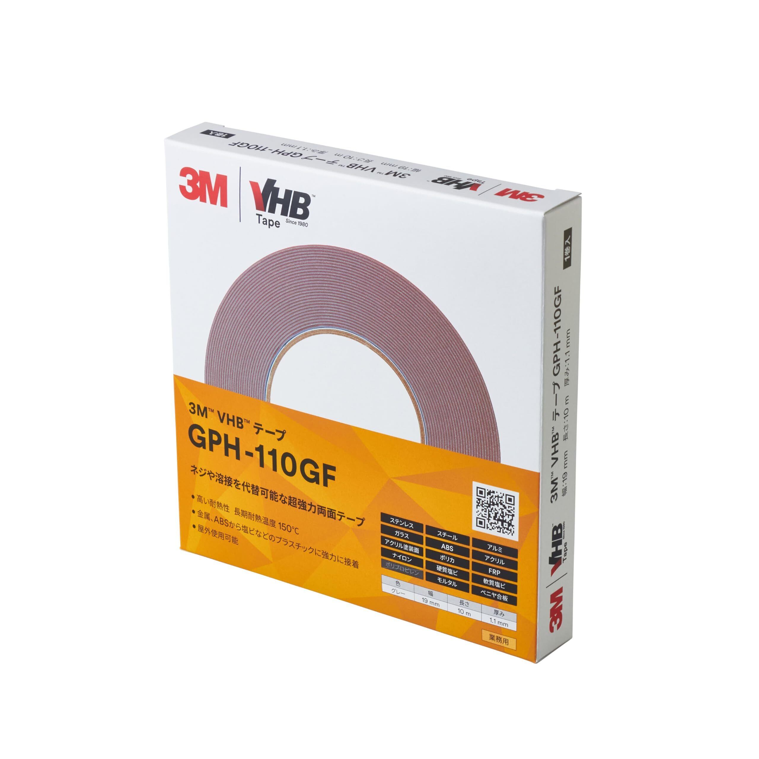 3M 屋内 屋外 高耐熱汎用 VHB テープ GPH-110GF, グレー, 19 mm x 10 m, 1.1 mm厚