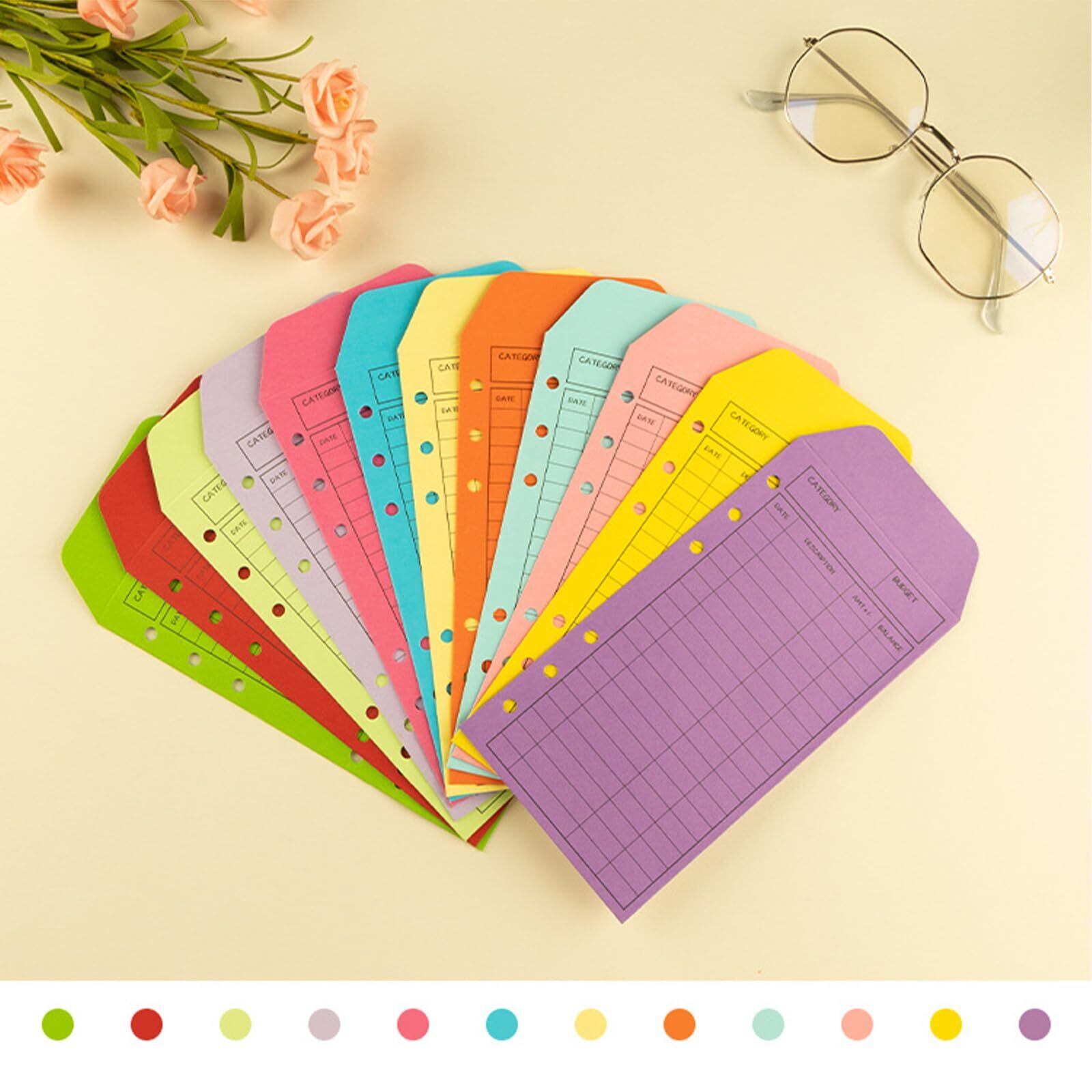 YFFSFDC 現金封筒 予算封筒 【12色 24枚 】予算システム 6穴 予算シート お金管理 予算管理 家計管理 家庭用 仕事用 業務用