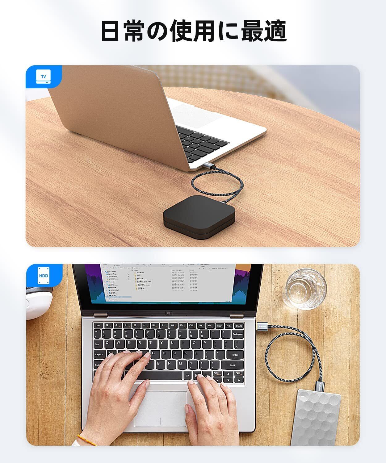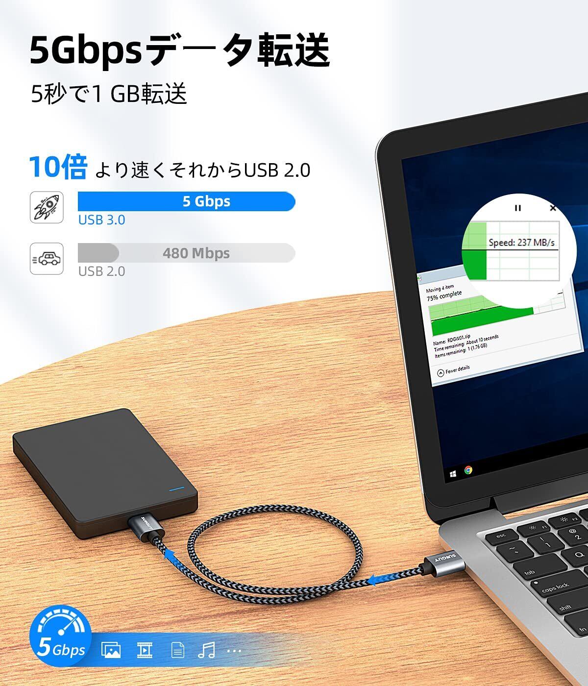 【高互換性】 USB外設とUSB 3.0 Type Aポートをコンピュータに接続し、高速データ転送を実現します。ノートパソコン、ノートパソコンの放熱パッド、スマートテレビ、車載USB、DVDプレーヤー、USB 3.0のハブ、カメラ、ブルーレイドライブ、セットトップボックス、ハードディスクドライブなどのType Aポートありの機種に適用。USBコネクタと併用することもできます。ご注意:このケーブルはノートPCやスマホ等のデバイスには充電できません。