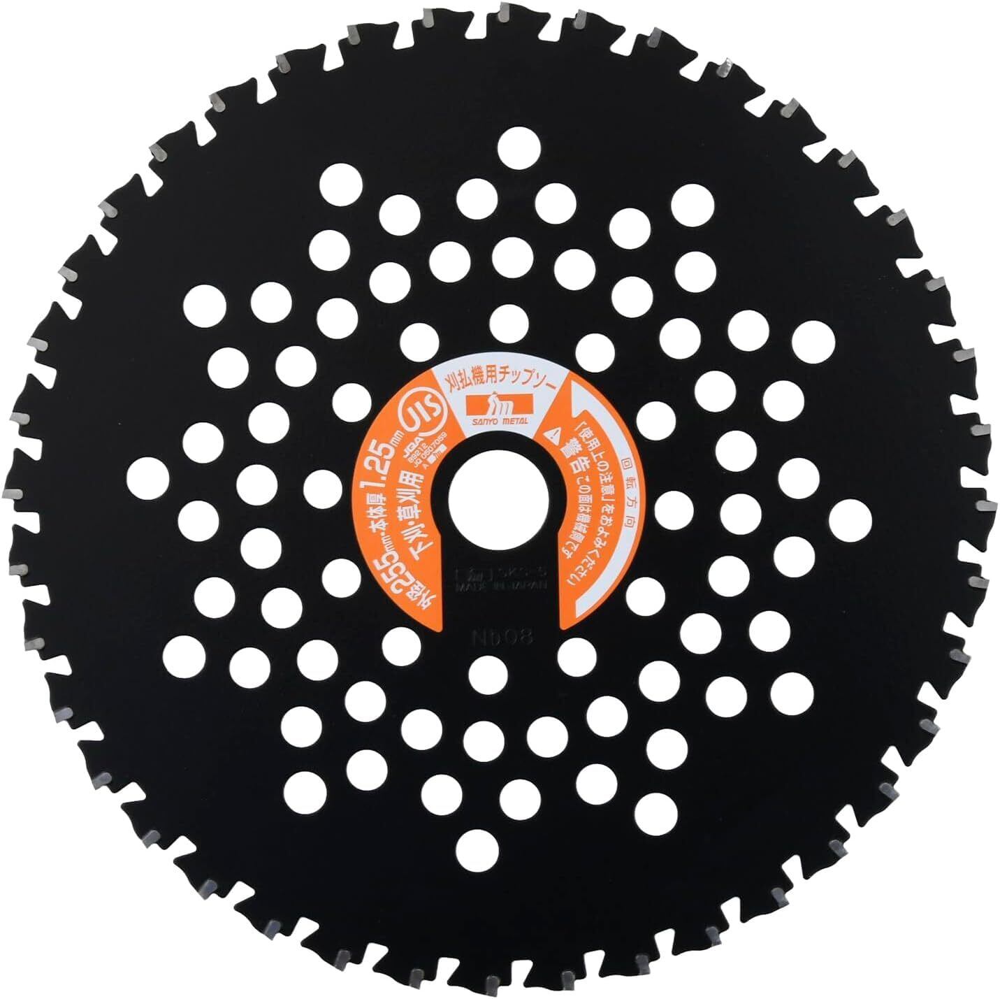 【特徴】石に強いチップソーです。鉄鋼用チップソーの埋め込み刃型に特殊研磨で切れ味もバツグン!本体中心にまっすぐに深く埋め込まれたチップは、ロー付け面積が広いためチップが飛びにくい設計で、驚異的なチップ耐久性を実現しました。タイルや石を切るチップソーの刃形を参考に屈強刃チップを実現しました。殆どののエンジン刈払機にも取付られます。