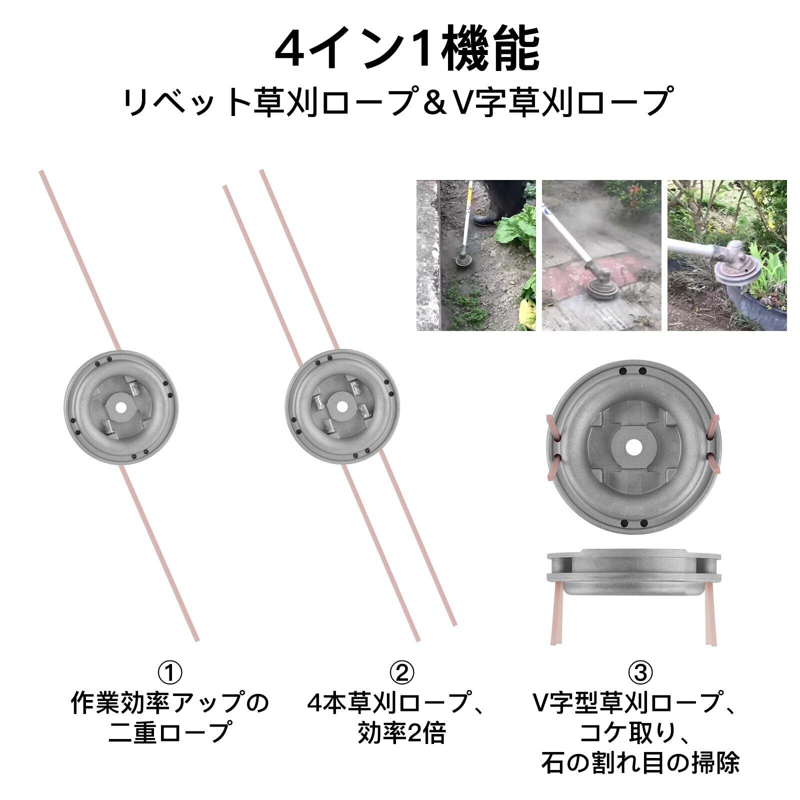 【4イン1機能& 特許出願中】①作業効率アップの二重ロープ。 ②4本草刈ロープ、効率2倍。③V字型草刈ロープ、コケ取り、石の割れ目の掃除。④刈刃スキッダー。(備考:草刈ブレードは別途購入が必要です。草刈ブレードは幅約9CM、厚さ1.6~2CMのものが必要です。)