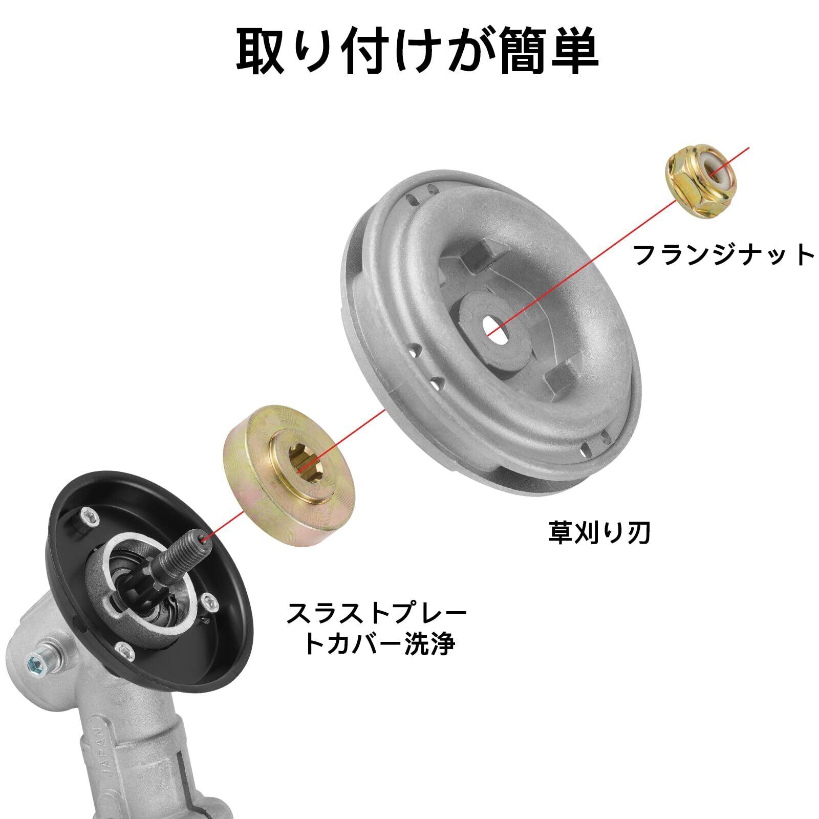 【高品質&取り付け簡単】本体はアルミ合金により、軽量で劣化しにくく半永久的に使用可能。ハンドル付動力式エンジン付草刈り機にそのまま取り付けるだけ。