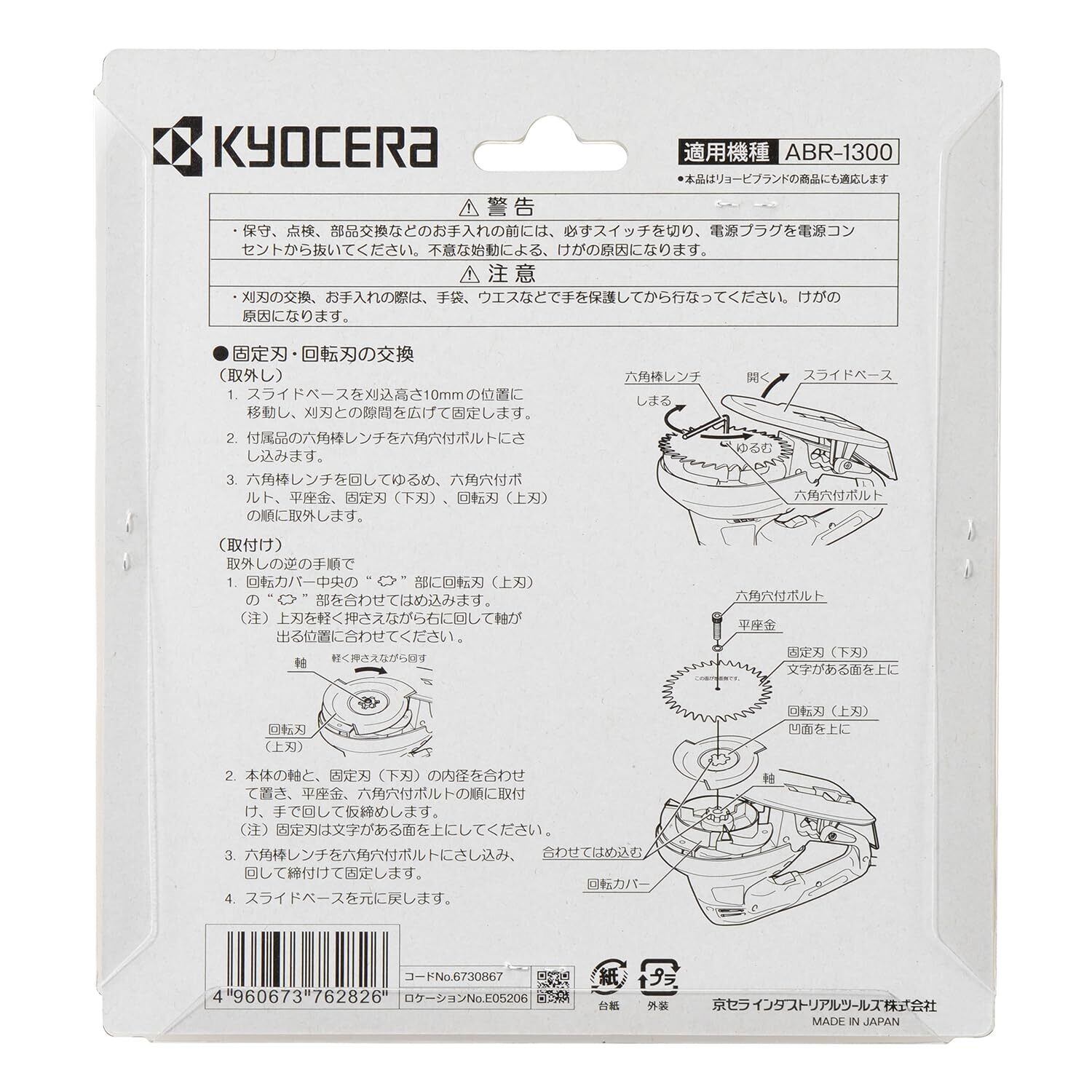 京セラ(Kyocera) 旧リョービ 回転刃 回転式バリカン ABR-1300用 6730867【切れ味長持ち】 固定刃と組み合わせて芝をカット 刃物径127mm 日本製