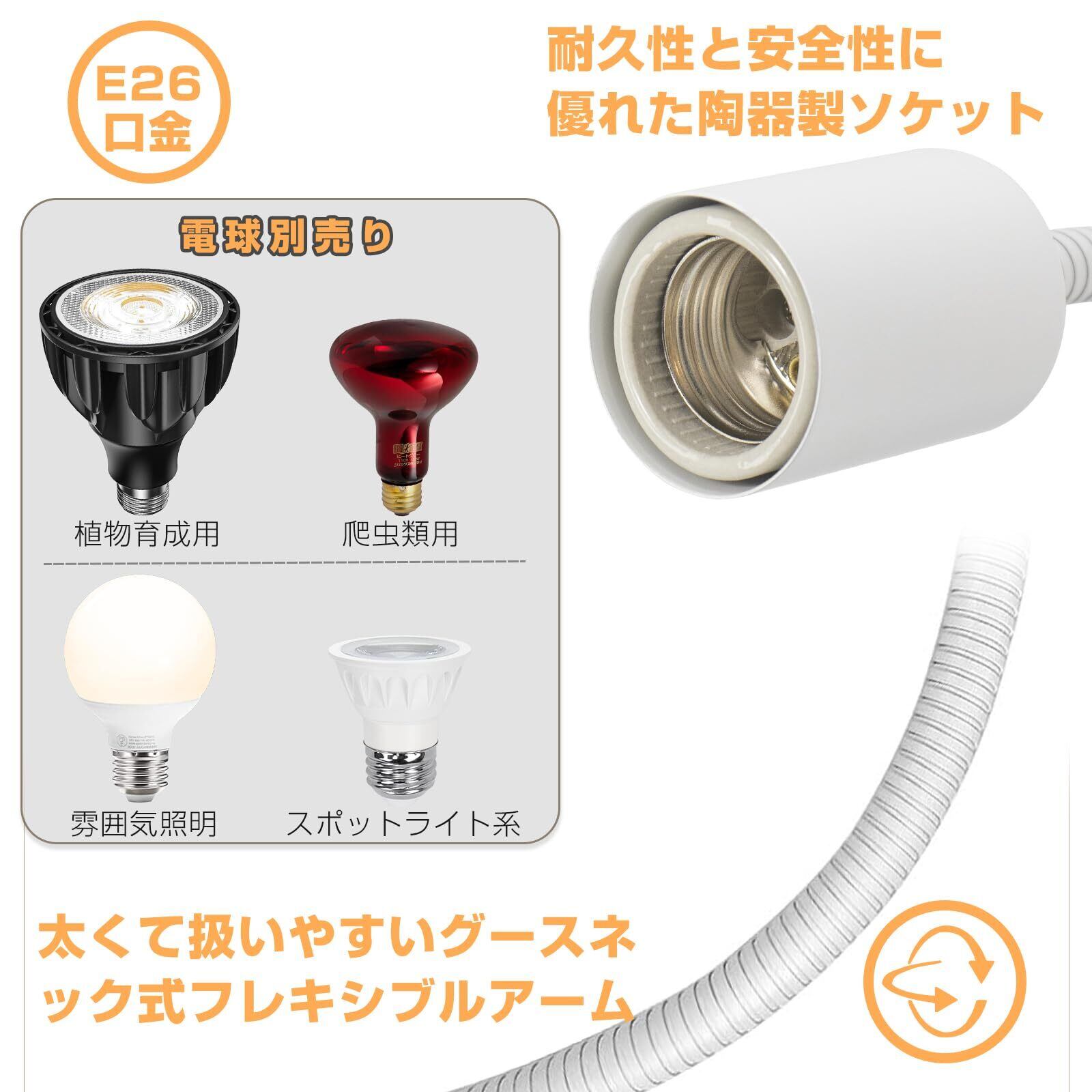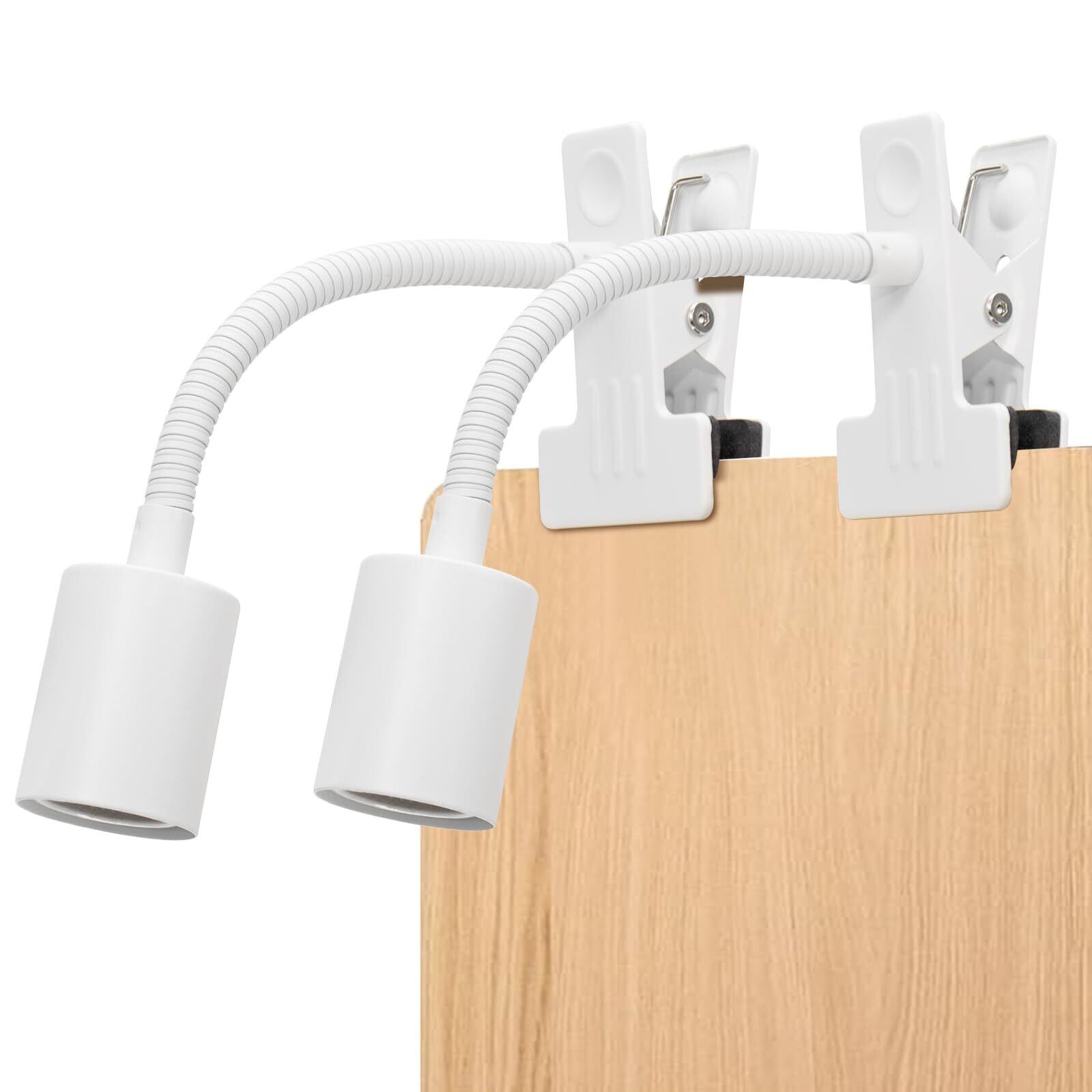 アセウイ(ASSEUI) クリップライト E26 クリップソケット 植物育成ライト ソケット 金属製、1.5mコード スイッチ付き (グースネック(ホワイト), 2個セット)