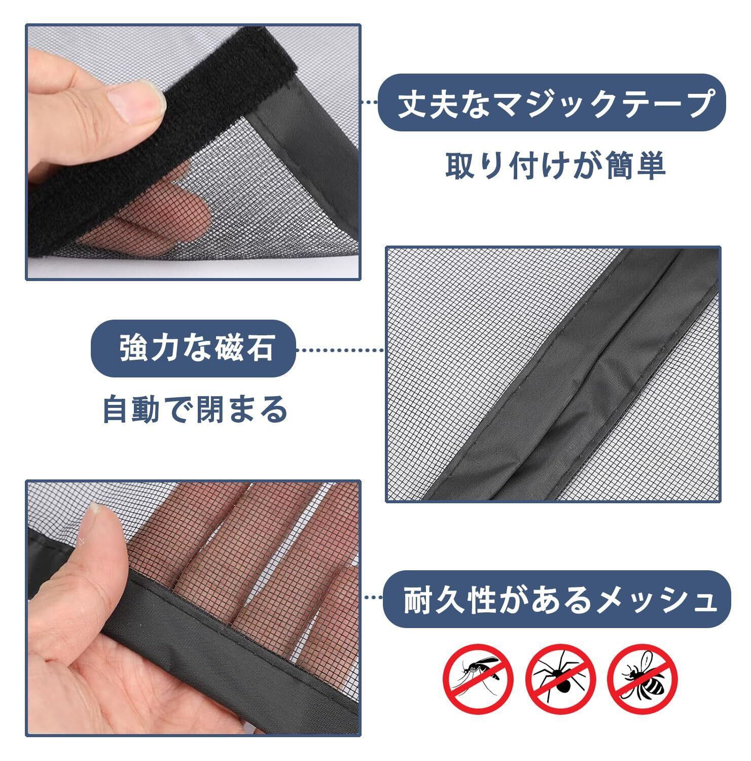 2【高品質・耐久性】他のナイロン網戸より耐久性が良いグラスファイバー素材の上、マグネット付き部に柔らかいウェビングでラッピングして二重縫い強度強化していますので、ほつれることはなく見た目も良く丈夫で長持ちできます。ガラス繊維の素材で耐久性、難燃性、耐薬品性も優れて、紫外線の防止も効きます。強力的なマグネット付き出入り楽で安全にお使いいただけます。