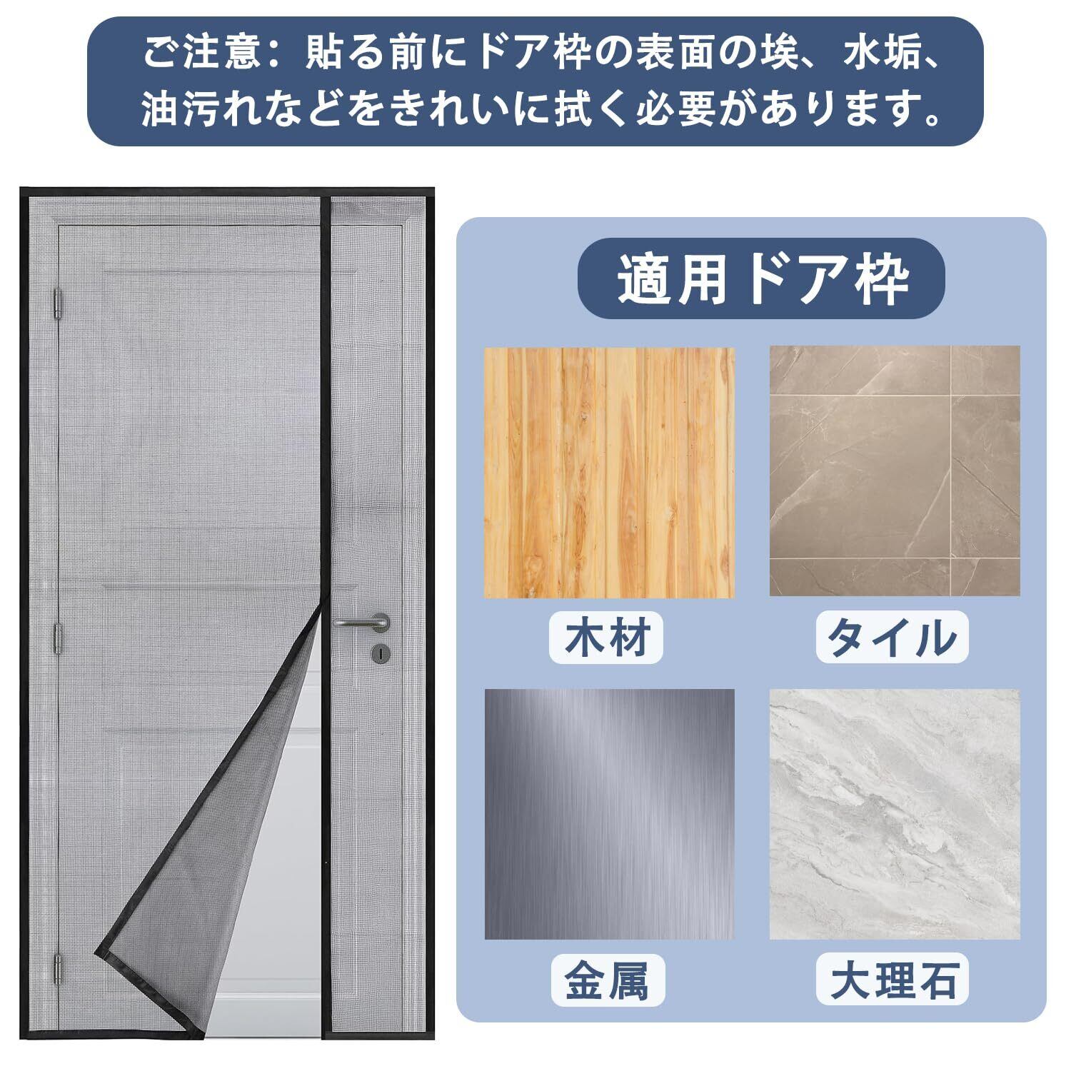 5【取付簡単・適用場所】工具不要!付属のマジックテープだけでドア枠に固定するだけで完了です。女性と老人の方でも簡単に取り付けが出来ます。使わない季節には取り外し、折りたたんでコンパクトに収納できます。玄関ドア、引き戸、キッチンドア、部屋、リビング、アパート、開き戸、勝手口やベランダなど色々な場所に取り付け可能!