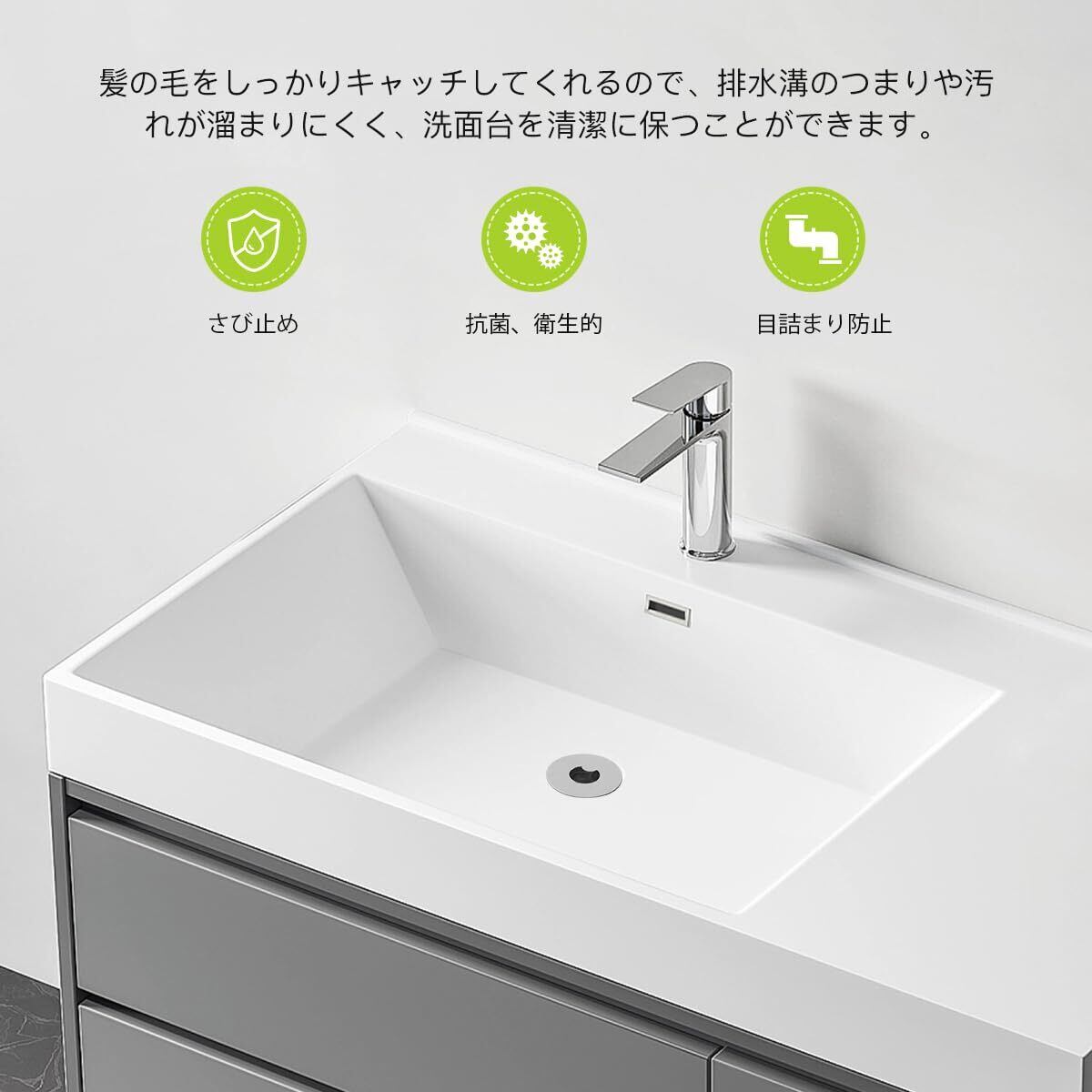【目詰まり防止】:髪の毛をきれいにつかまえることができ、ジュエリーや指輪、小物などが排水管に入って、排水管の詰まりを防ぎます。