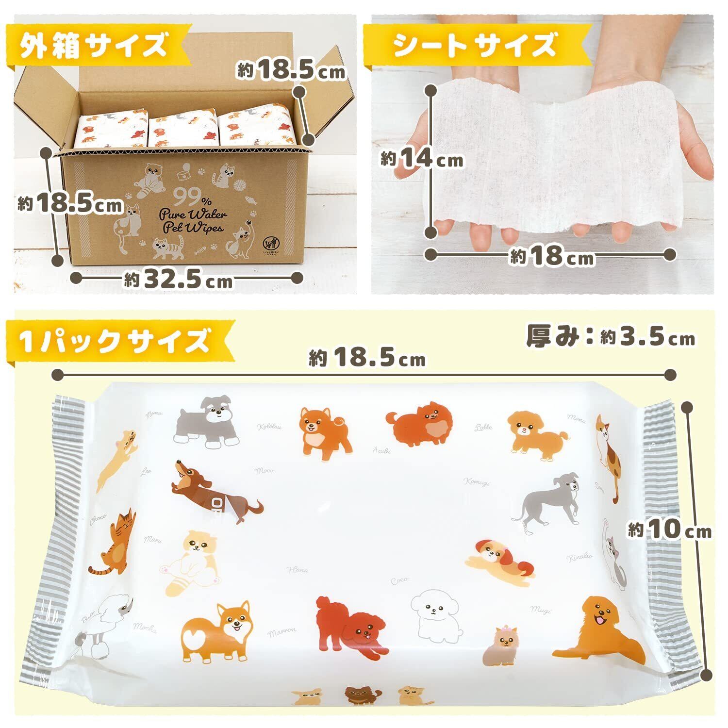 ●お散歩後の手足拭きや、ごはん後のお顔周りのケアに、トイレ後のおしりふきや毎日のボディーケアに。