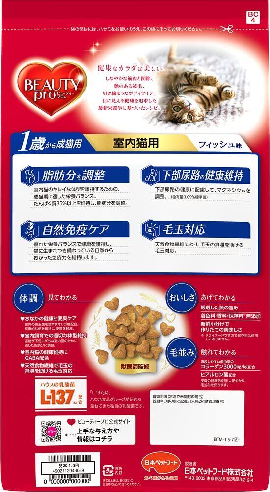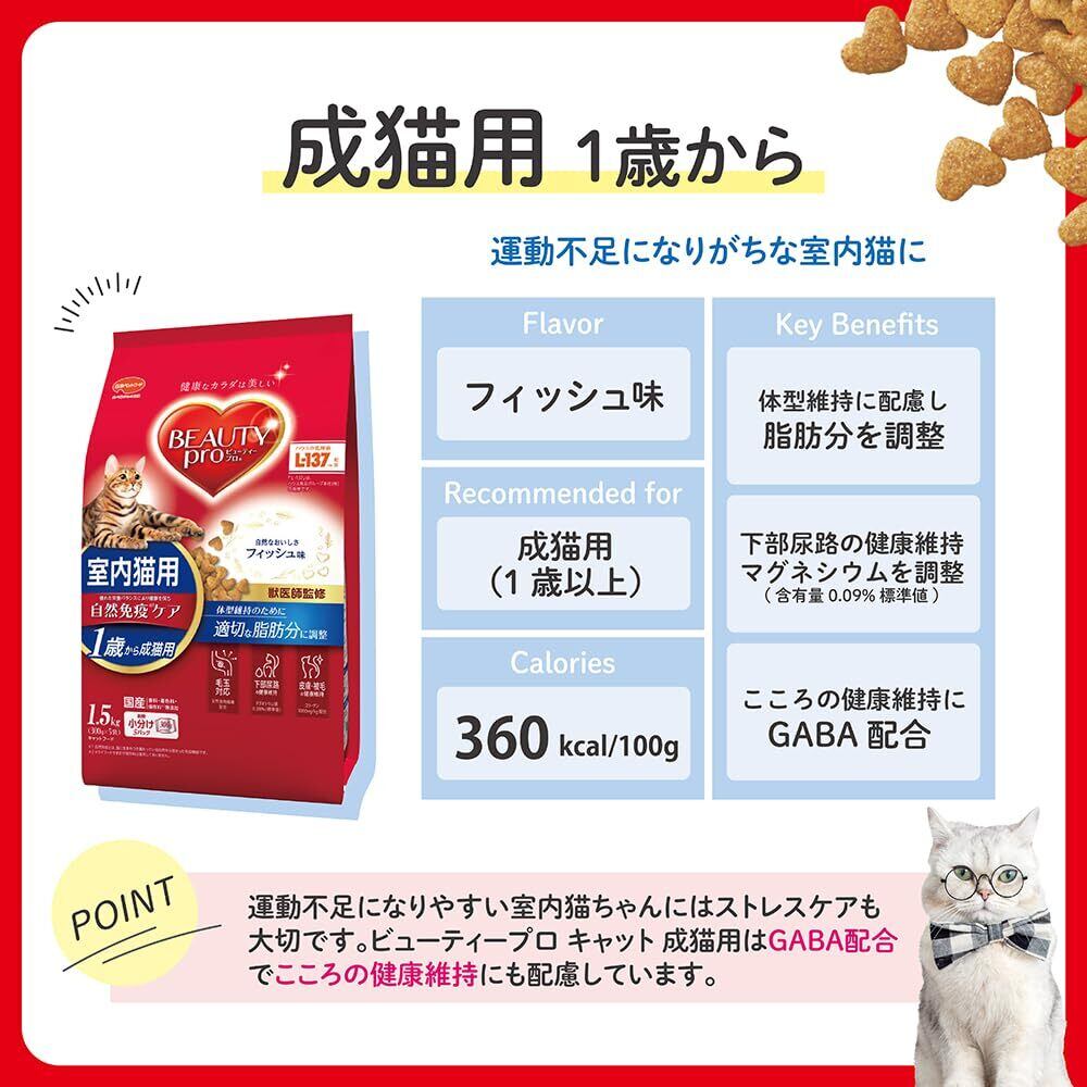 ビューティープロ キャットフード 成猫用 1歳から フィッシュ味 1.5kg 【獣医師監修】 【国産】 【小分包装】