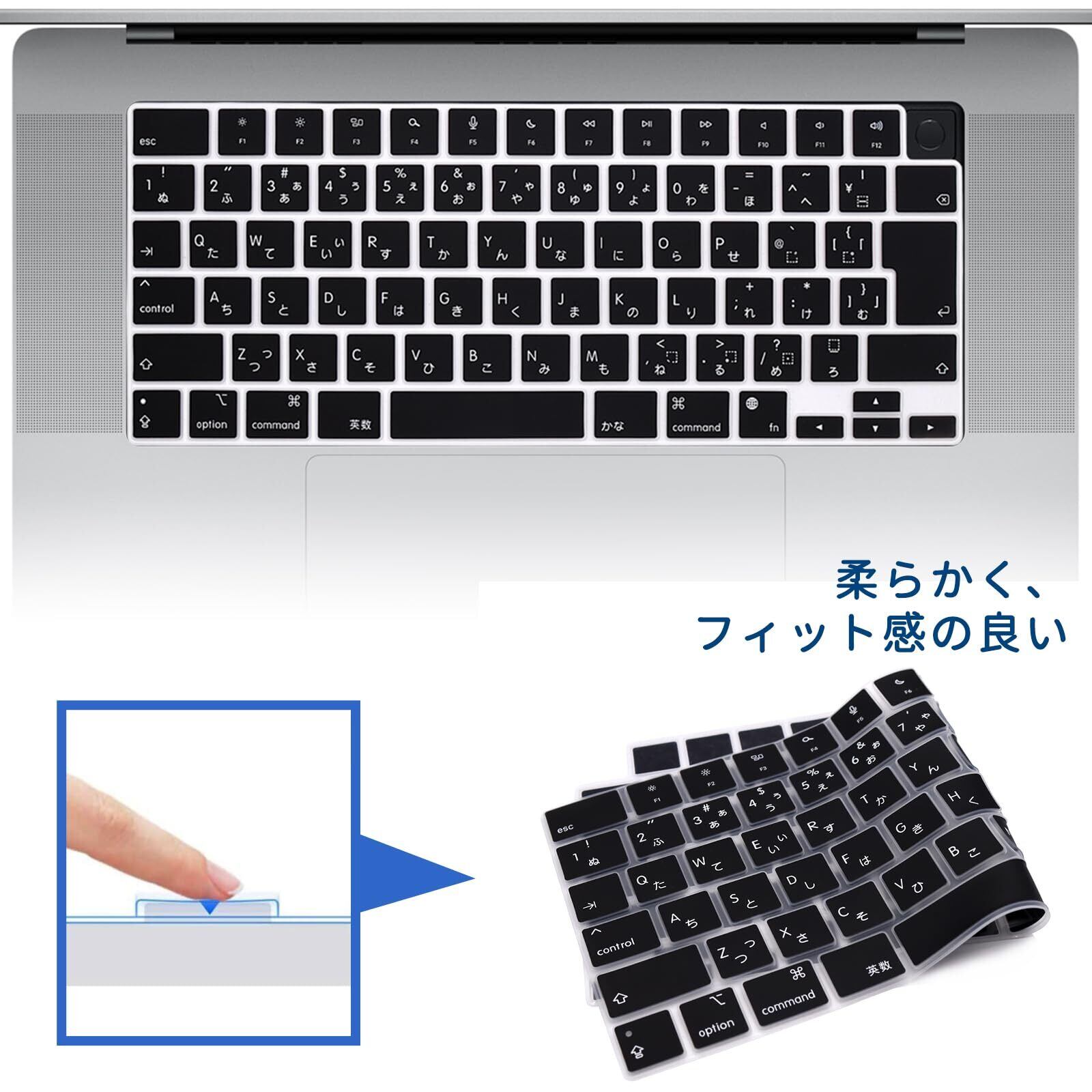 【新着商品】Macbook Air 13/15(2025)/ Pro 14/16 專用 キーボードカバー 日本語JIS配列 対応(2021-2025) M4/M3/M2 型番 A3240/A3241/A3112/A3401/A3403/A3113/A3114/A2991/A2992/A2779/A2780/A2941/A2681 マックブック プロ/エアー 14/16/13.6/15.3 (ブラック)