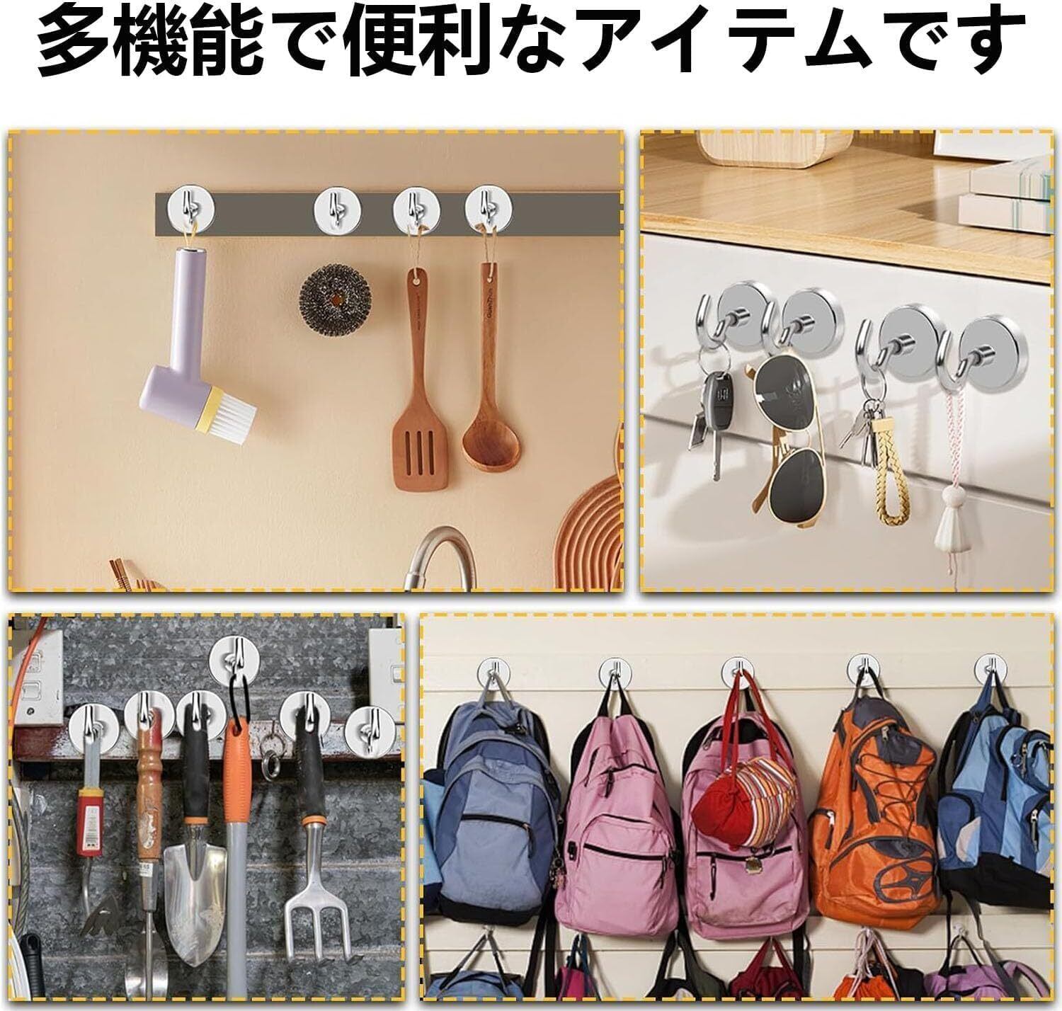【様々なシーンで活躍】磁気吸着式フックで粘着剤の使用は不要で、自由に取付・取外しできますので、気軽に必要な場所に付けられます。キッチン収納(鉄の鍋、フライパン、卵焼き器、ナイフ、食器などを掛ける)だけではなく、冷蔵庫、玄関ドア、バスルーム、寝室、ロッカー、オフィス、倉庫、ガレージでも使用できます!