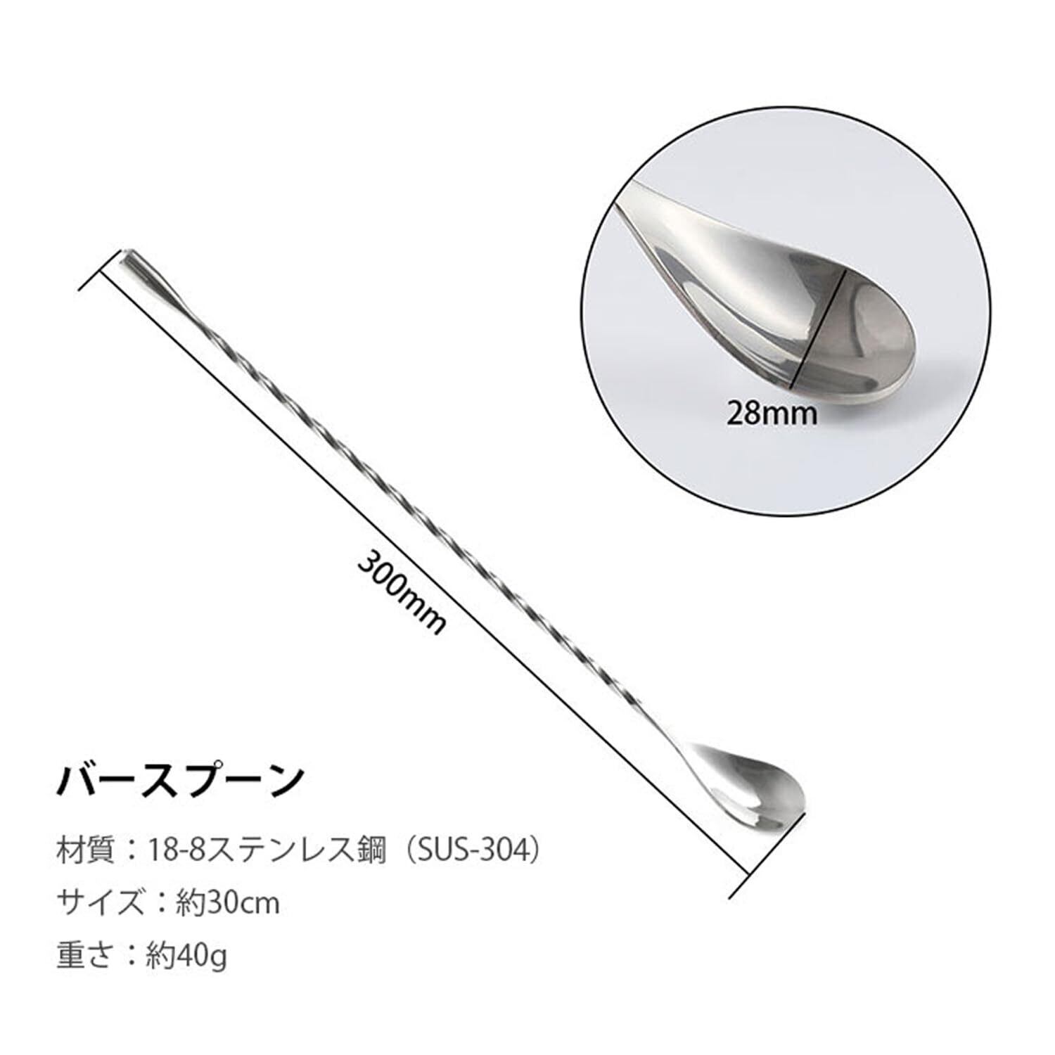セット内容:バースプーン2個セット 材質:18-8ステンレス鋼(SUS-304) サイズ:約30cm 重さ:約40g