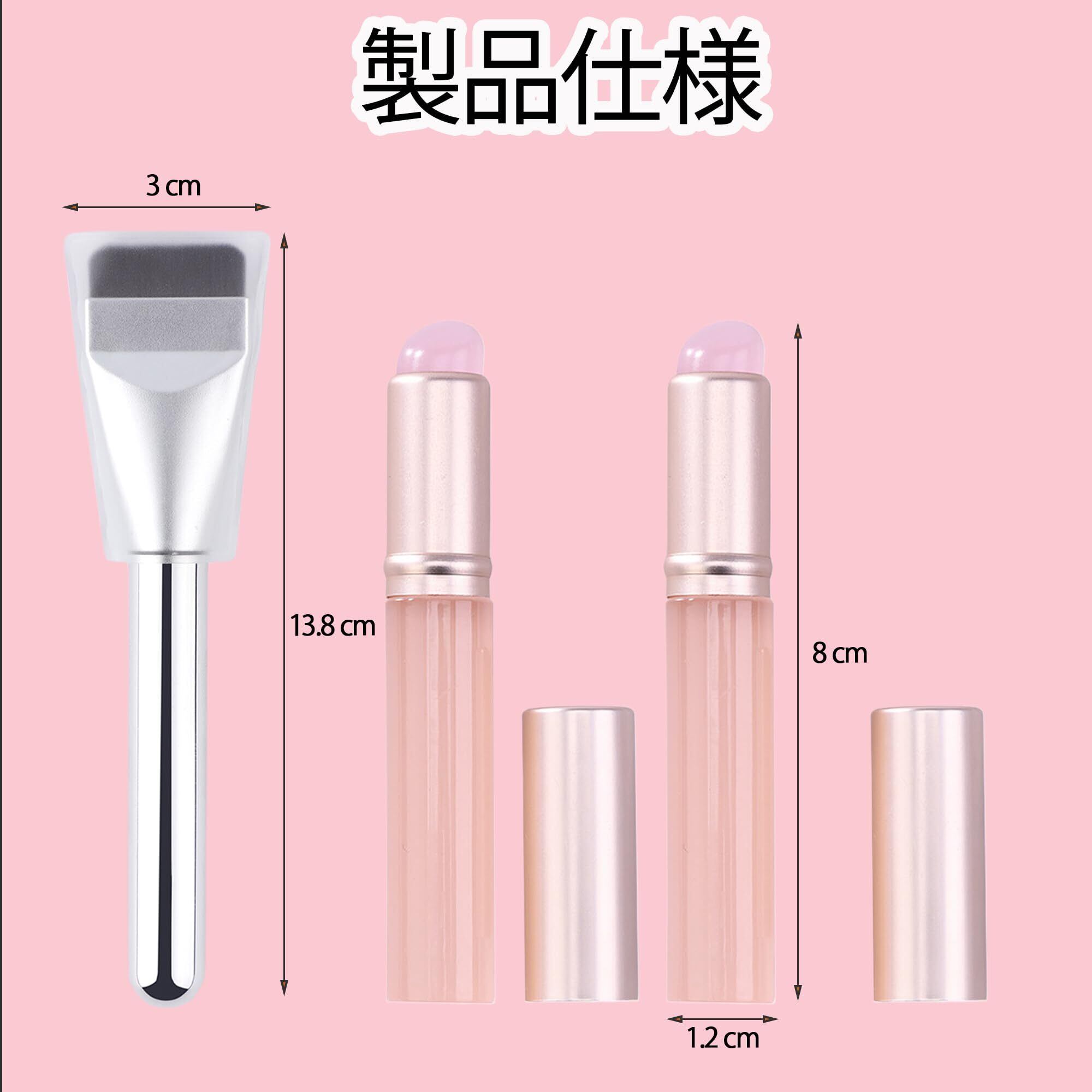 【製品仕様】セット内容は、2本のシリコン製リップブラシと1本のファンデーションブラシ。リップブラシのサイズ:8 * 1.2cm(カバー付き)、素材:シリコン製ブラシヘッド、重さ:約9g/1本。
