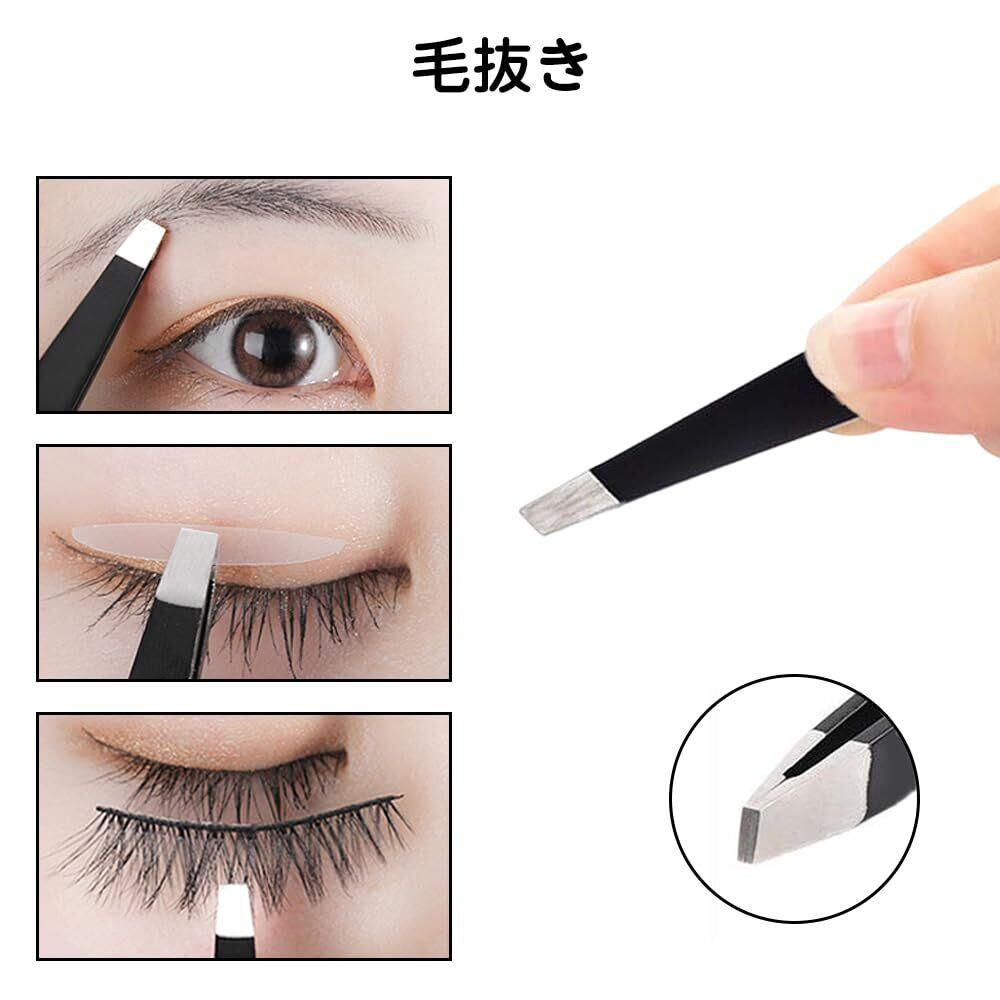 毛抜き:毛を確実に捉えて、軽く抜き取る。使用する前に、眉の肌をよく温めて毛穴があいてから抜くのが痛みを和らげます。