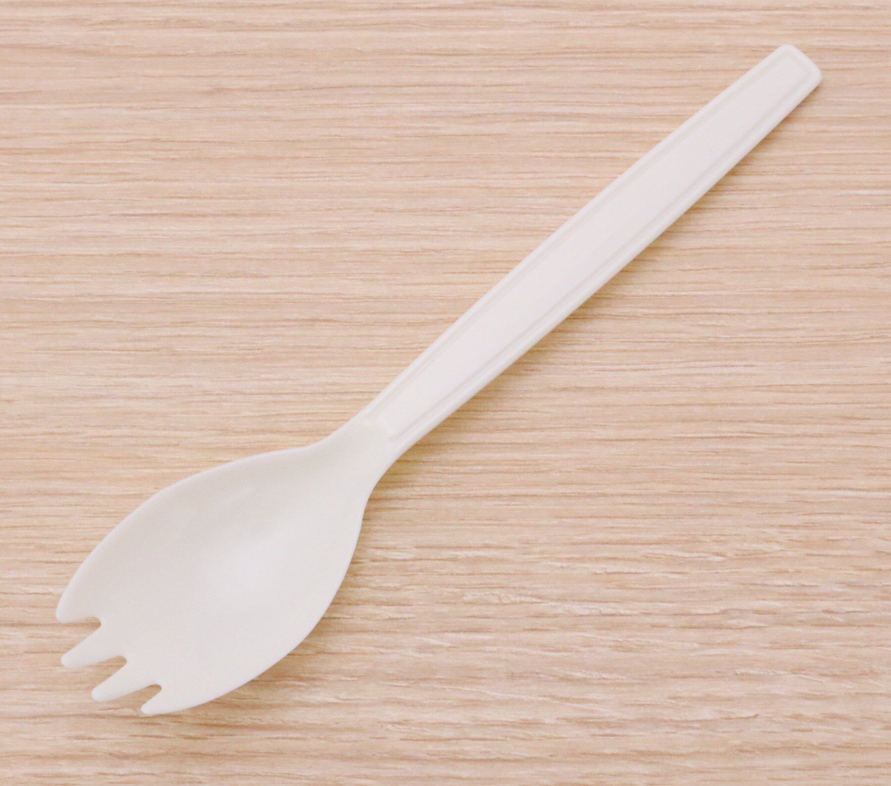 使い捨てタイプの先割れプラスチックスプーン