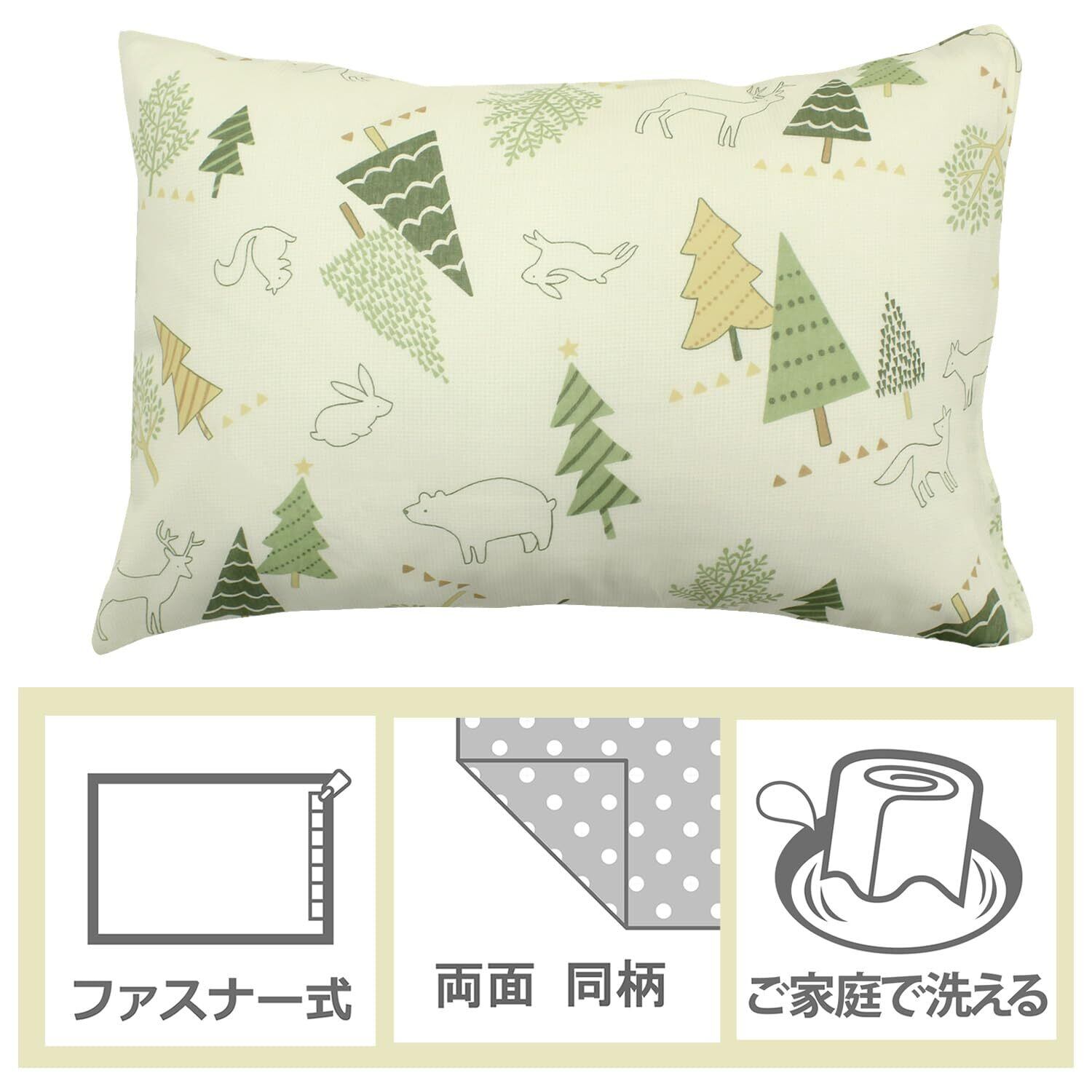【数量限定】メリーナイト 枕カバー 「北欧ツリー」 グリーン 約43×63cm ファスナー式 まくらが入れやすい 綿混素材 速乾 シワになりにくい 洗える 衛生 清潔 オールシーズン MN16152-53